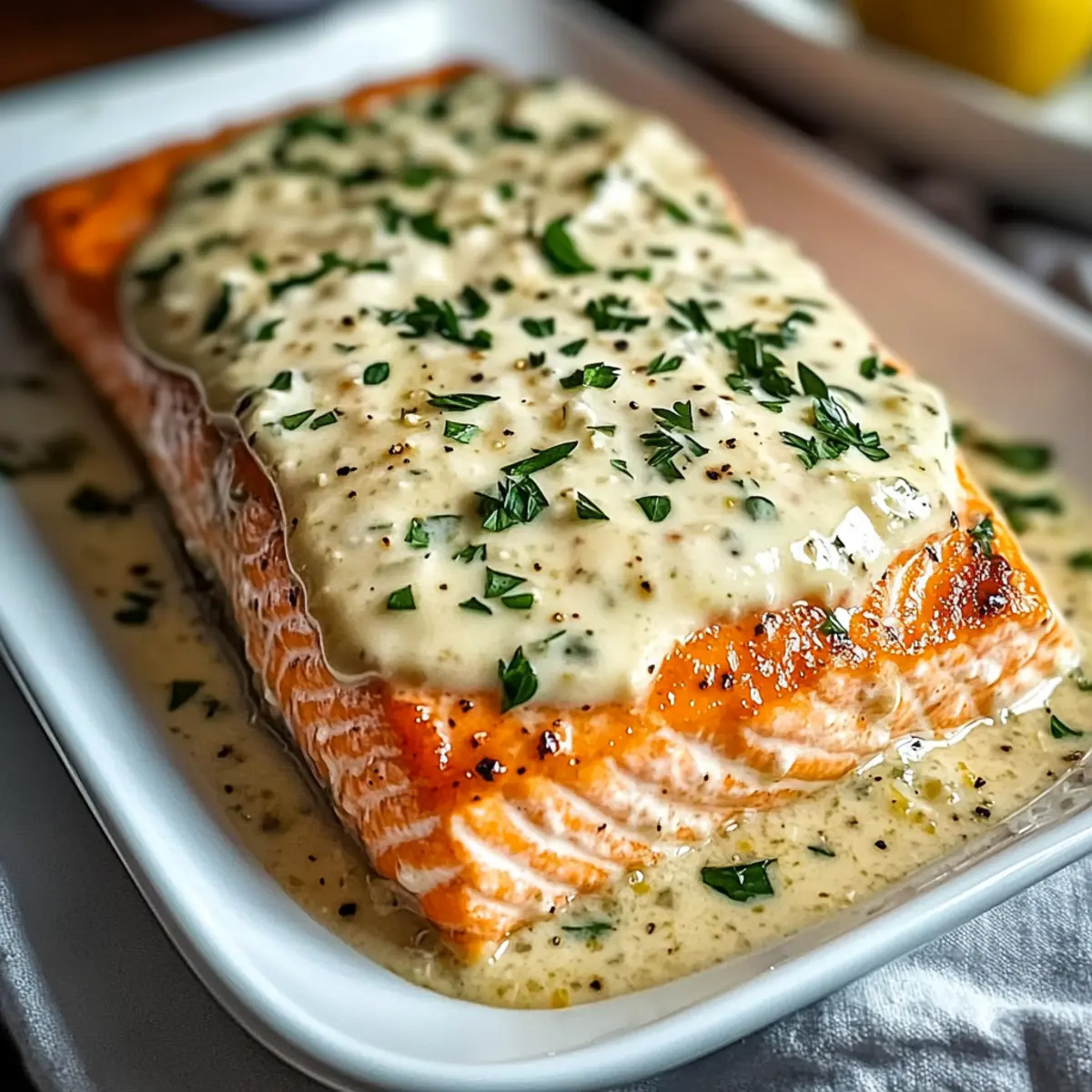 After enjoying your meal, store leftovers promptly in an airtight container. They will stay fresh in the fridge for up to 3 days. To reheat, place the salmon back in a warm oven to prevent it from drying out, which ensures you still receive that delectable creamy topping.