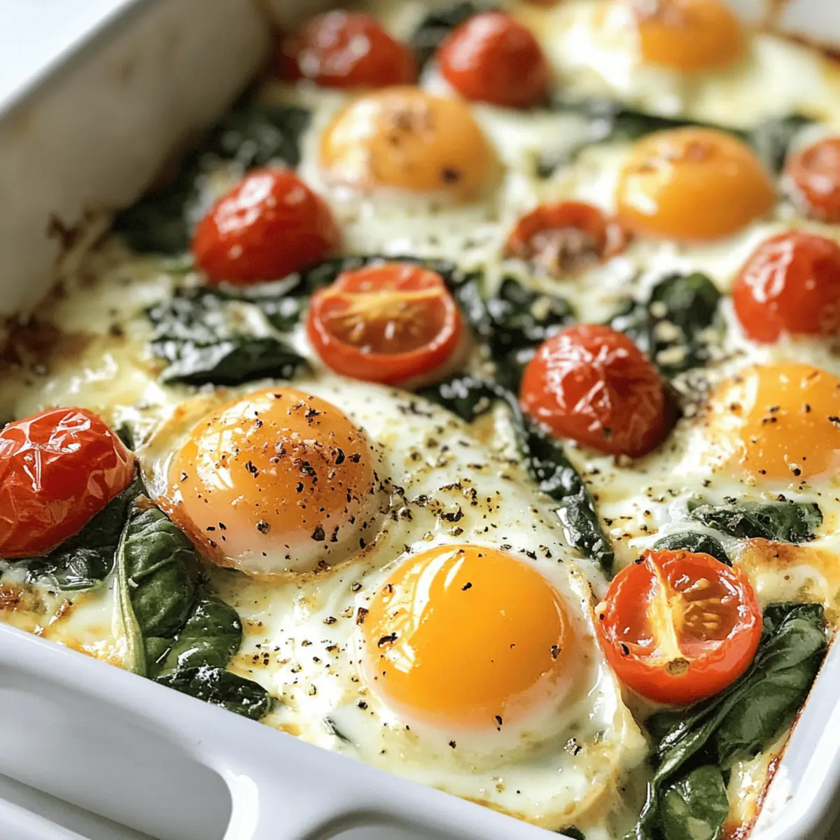Once the vegetables and feta are roasted, remove them from the oven and give everything a gentle stir to combine. Then, fold the fresh baby spinach into the mixture, allowing it to wilt in the warmth. This adds a lovely pop of color and nutrients to your Baked Feta Eggs.
