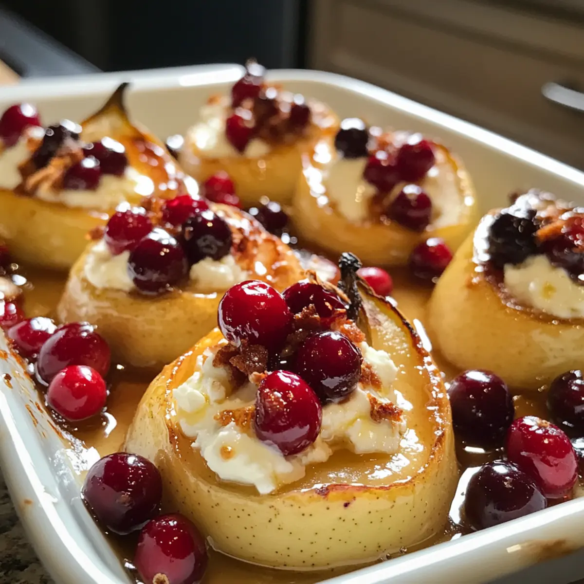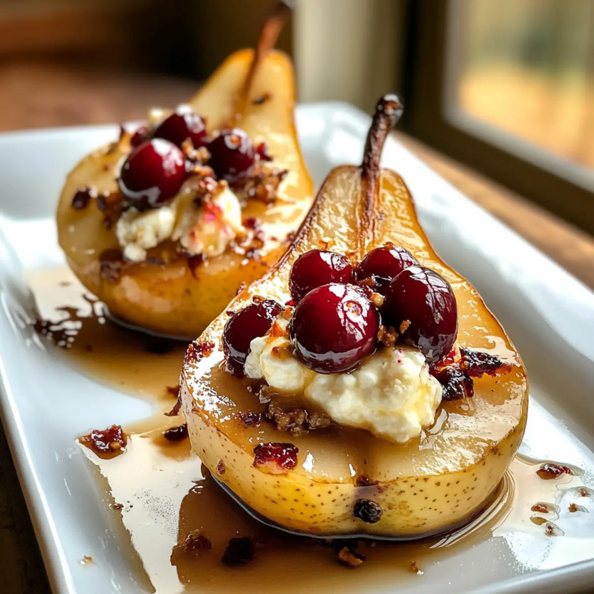 Delicious Baked Pears with Goat Cheese, Honey, and Cranberries