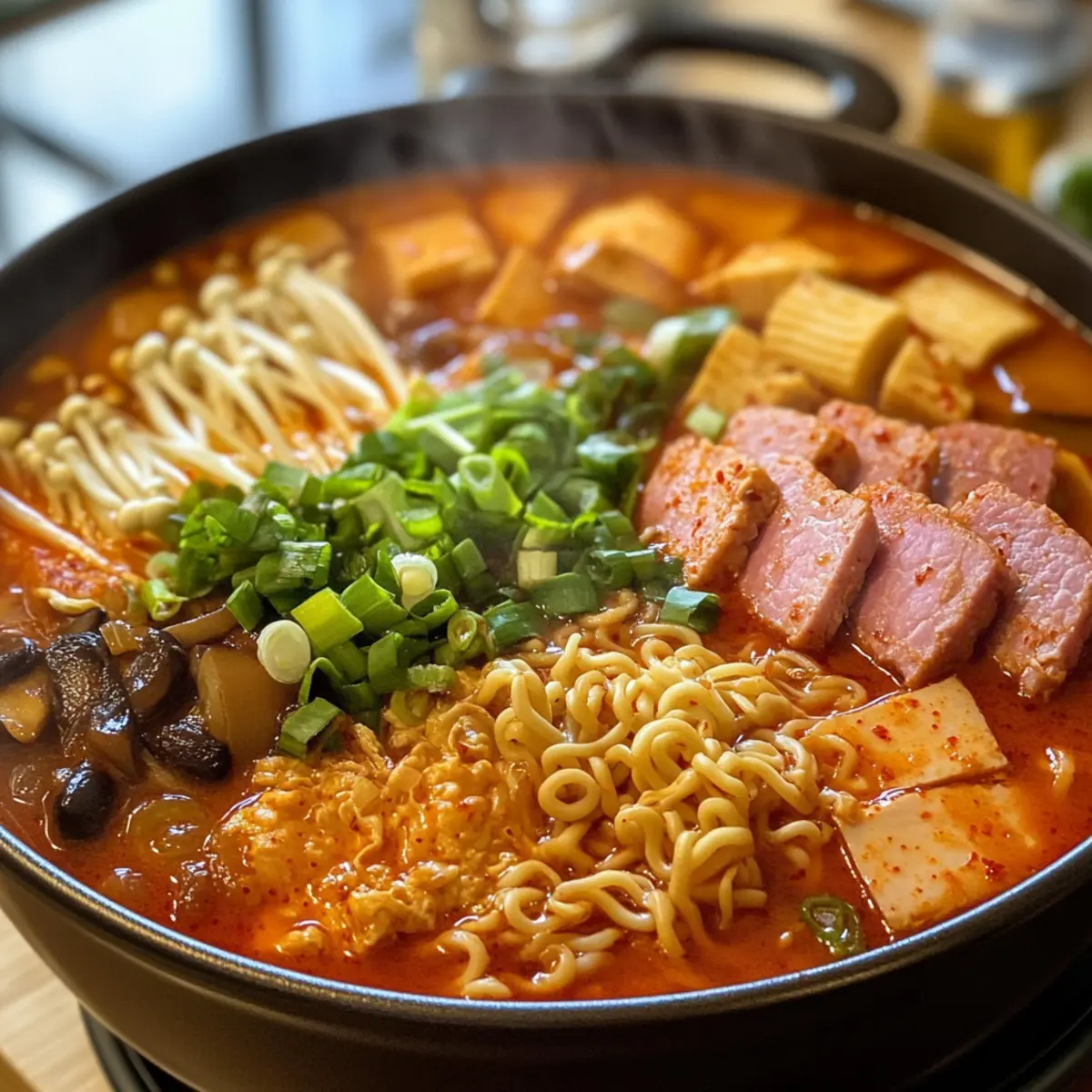 Herb Garnish: Top your Budae Jjigae with fresh herbs like cilantro or parsley for an aromatic finish. This not only adds a pop of color but also brightens the overall flavor of the dish.