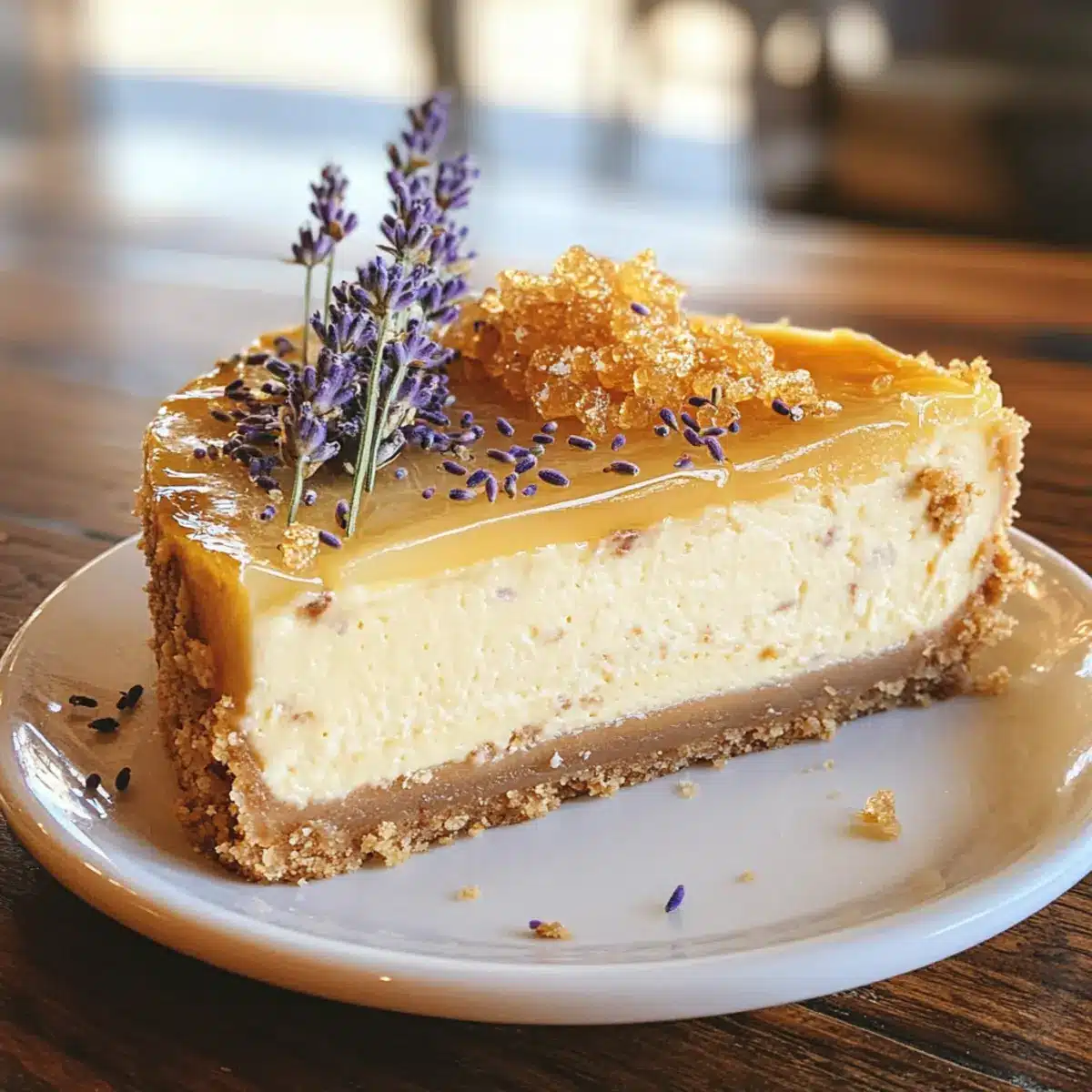 Lemon Lavender Cheesecake Topped with Honeycomb Bliss