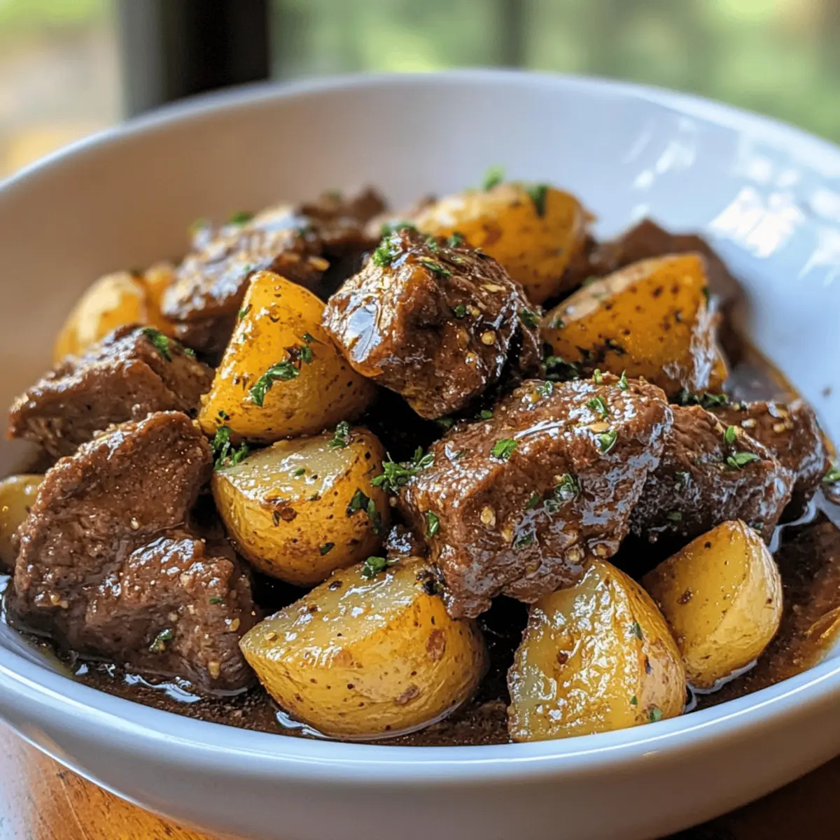 Mouthwatering Garlic Butter Beef Bites & Potatoes Delight