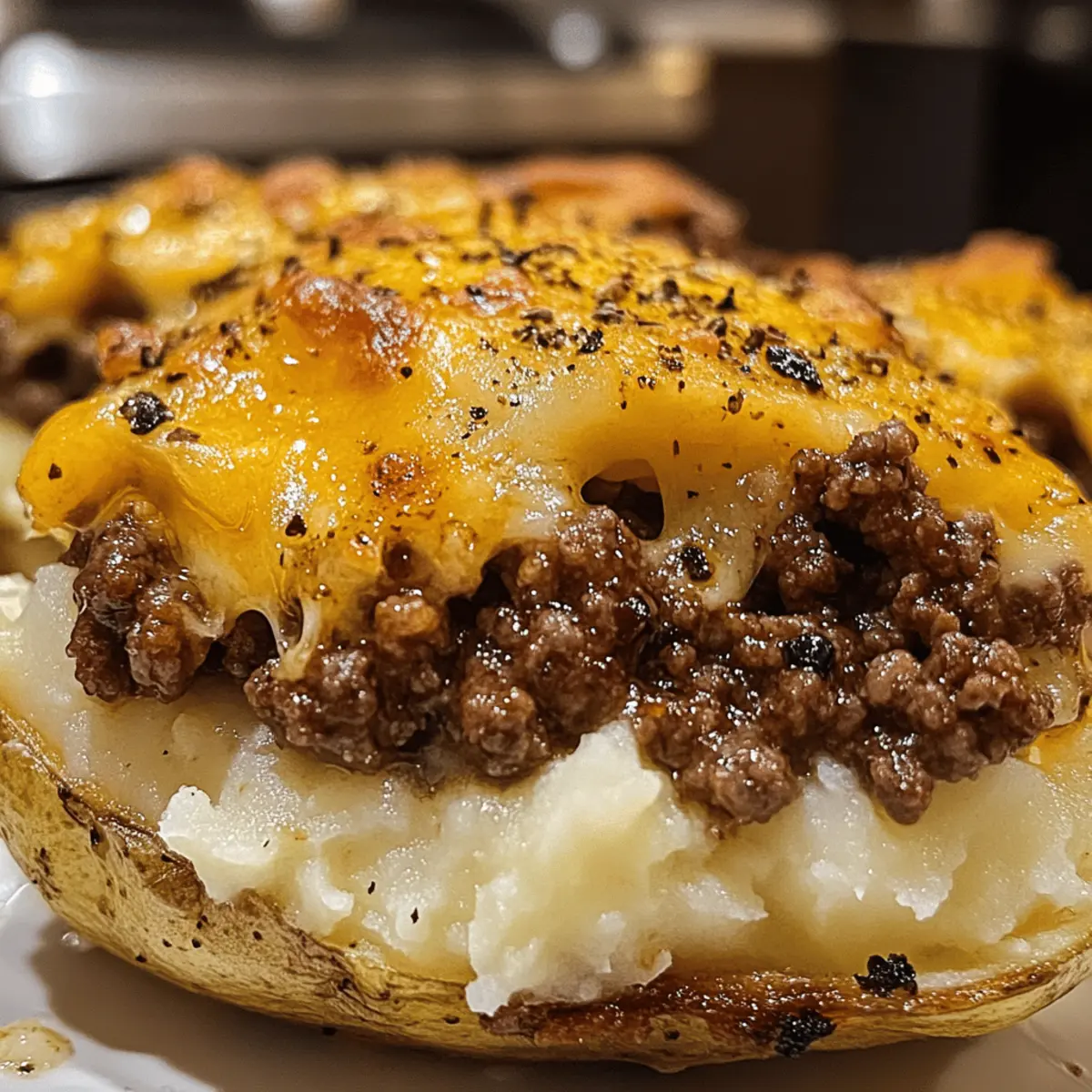 Cheesy Ground Beef-Stuffed Crispy Mashed Potatoes Bliss