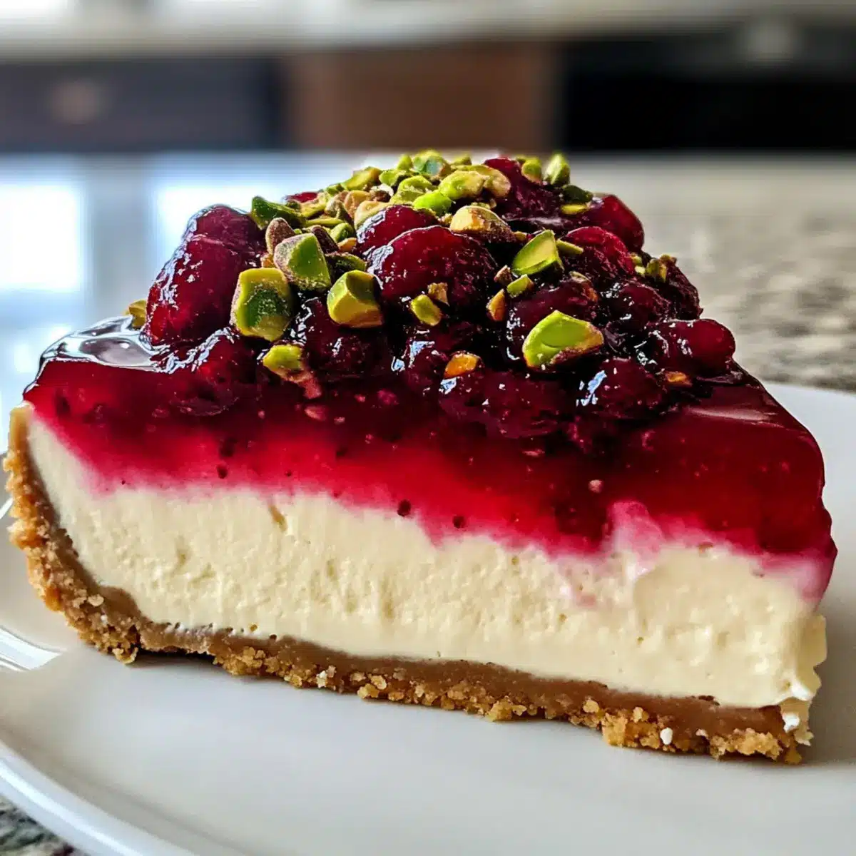 Decadent Delight: This Cherry Pistachio Cheesecake is a luxurious dessert that combines creamy richness with delightful crunch, making it irresistible for any palate.
