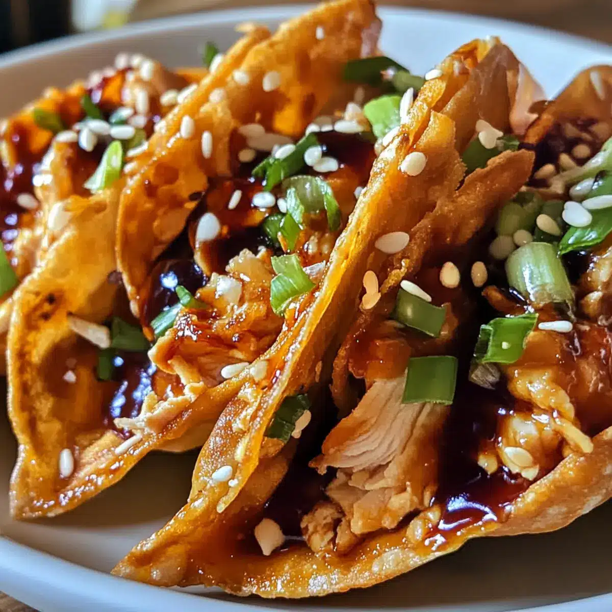 Crispy Chicken Wonton Tacos with Sweet Teriyaki Twist