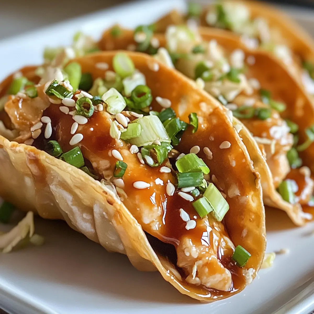 Have you ever found yourself drooling over the thought of taco night, but craving something a little more exciting than the usual? Let me introduce you to my Crispy Chicken Wonton Tacos with Perfect Teriyaki Glaze! These delightful bites bring an Asian fusion twist to your table, combining crispy wonton shells with juicy teriyaki-glazed chicken. What makes this recipe a must-try? Not only is it incredibly quick to prepare, but it can easily be customized to fit any palate—whether you prefer chicken, tofu, or even shrimp. Perfect as appetizers for your next gathering or a fun weeknight dinner, these tacos are sure to impress everyone. Ready to elevate your taco game while keeping those takeout cravings at bay? Dive in to discover how to whip up this delicious dish!