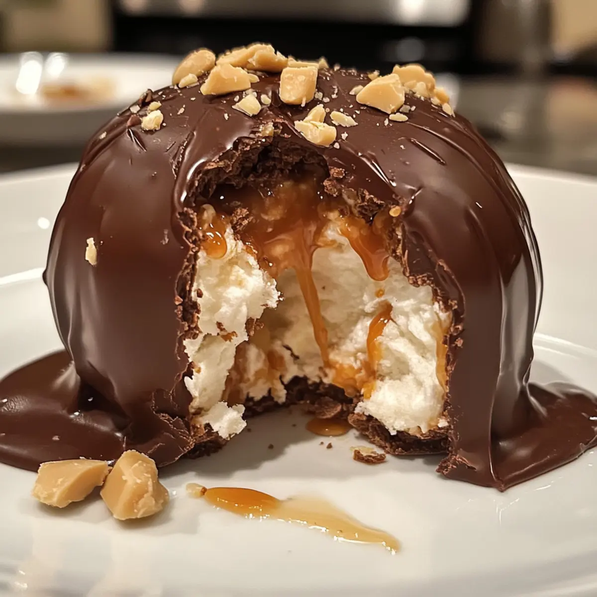 Indulge in Chocolate Peanut Butter Snowballs with Caramel Drizzle