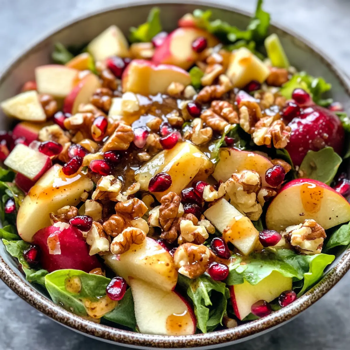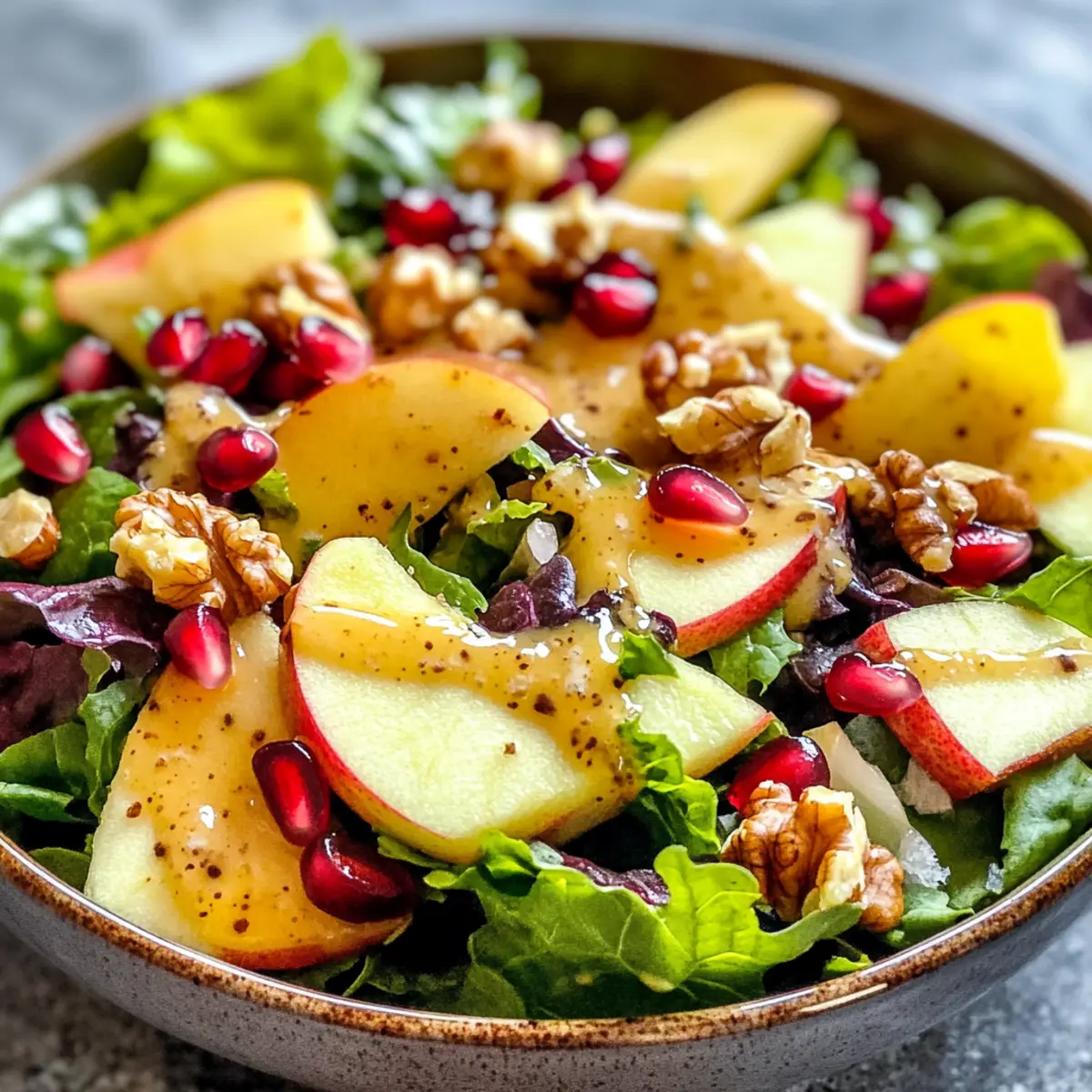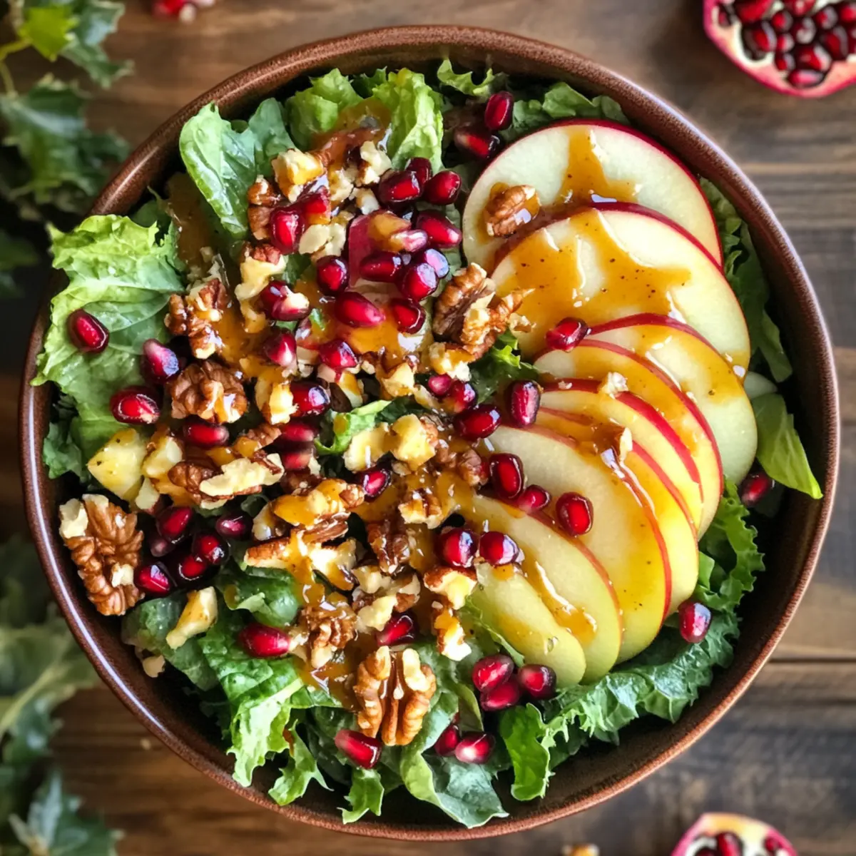 Sprinkle in a handful of pomegranate seeds, letting their jewel-like appearance and sweet bursts of flavor enhance your salad. If pomegranate seeds aren’t available, feel free to substitute with dried cranberries for a similar sweetness. The combination of apples and pomegranate seeds will elevate the dish, creating a lovely visual display.