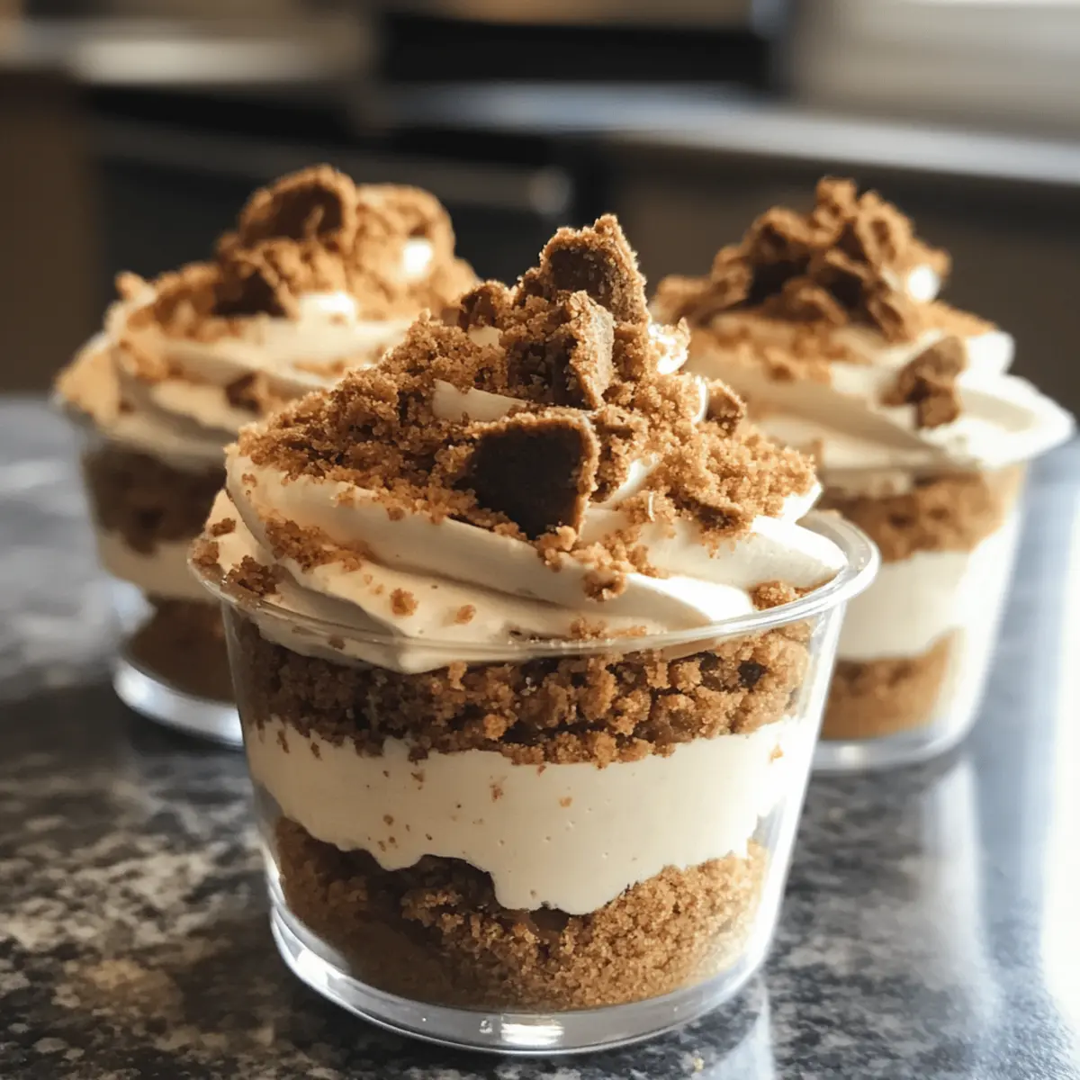 In a mixing bowl, combine the Biscoff or Speculoos cookie crumbs with melted butter, stirring until evenly moistened. Spoon this mixture into the bottom of each serving cup, pressing down firmly with the back of a spoon to create a strong, even layer. Set these cups aside while you whip up the delicious filling.