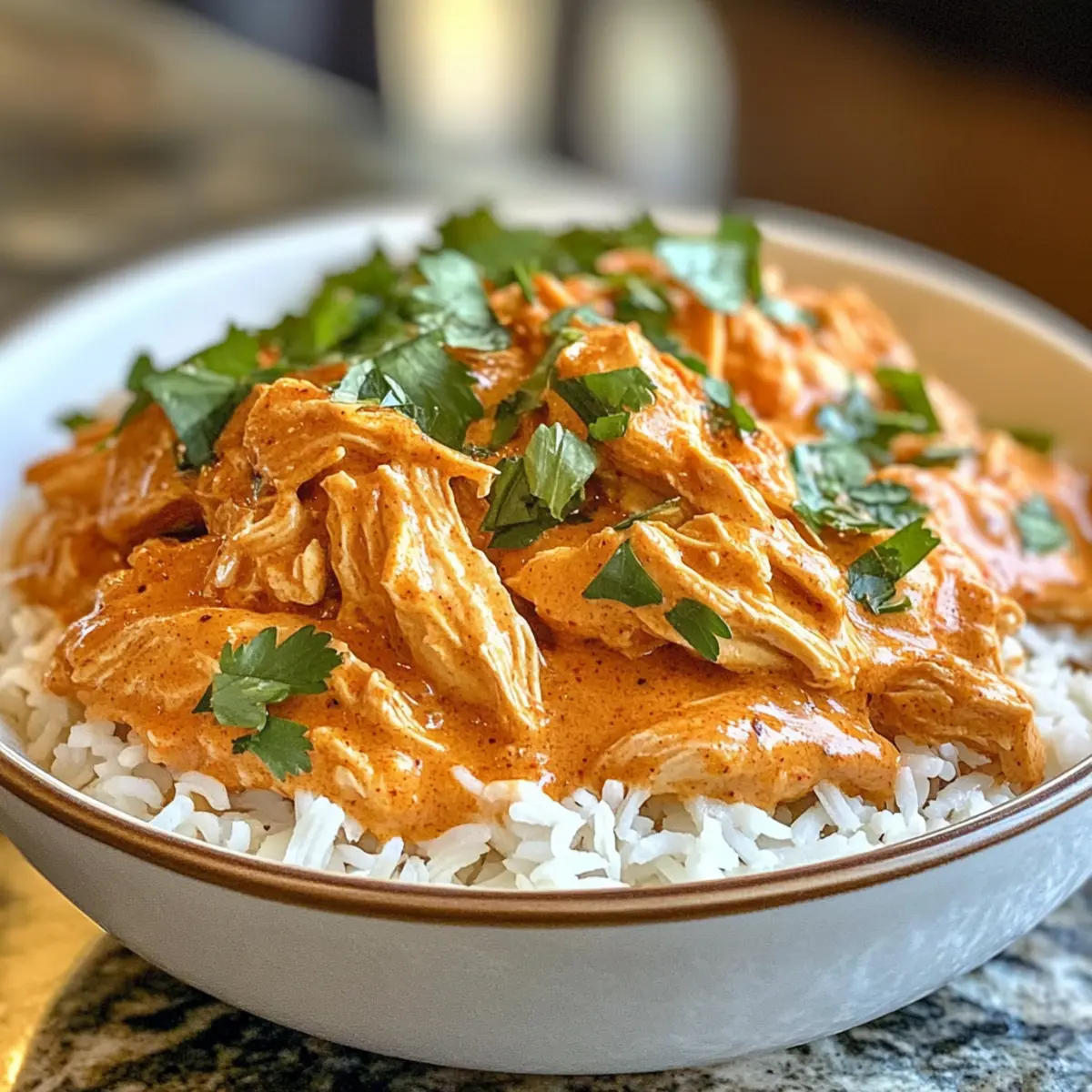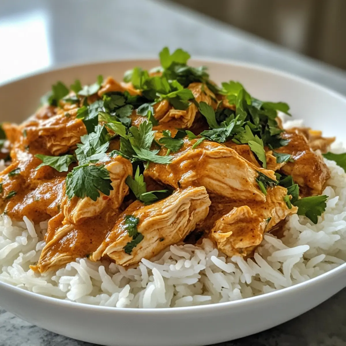 Fluffy White Rice: Perfectly absorbs the creamy sauce while providing a neutral base that complements the rich flavors of the chicken.