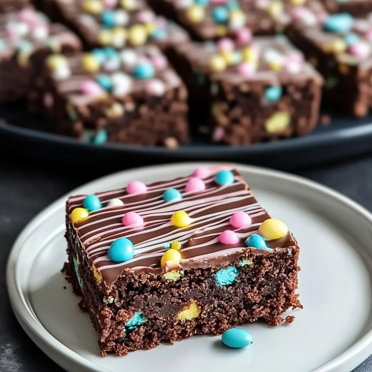 Festive Appeal: Topped with vibrant pastel colors, these brownies are as lovely to look at as they are to taste, making them perfect for your Easter celebrations.