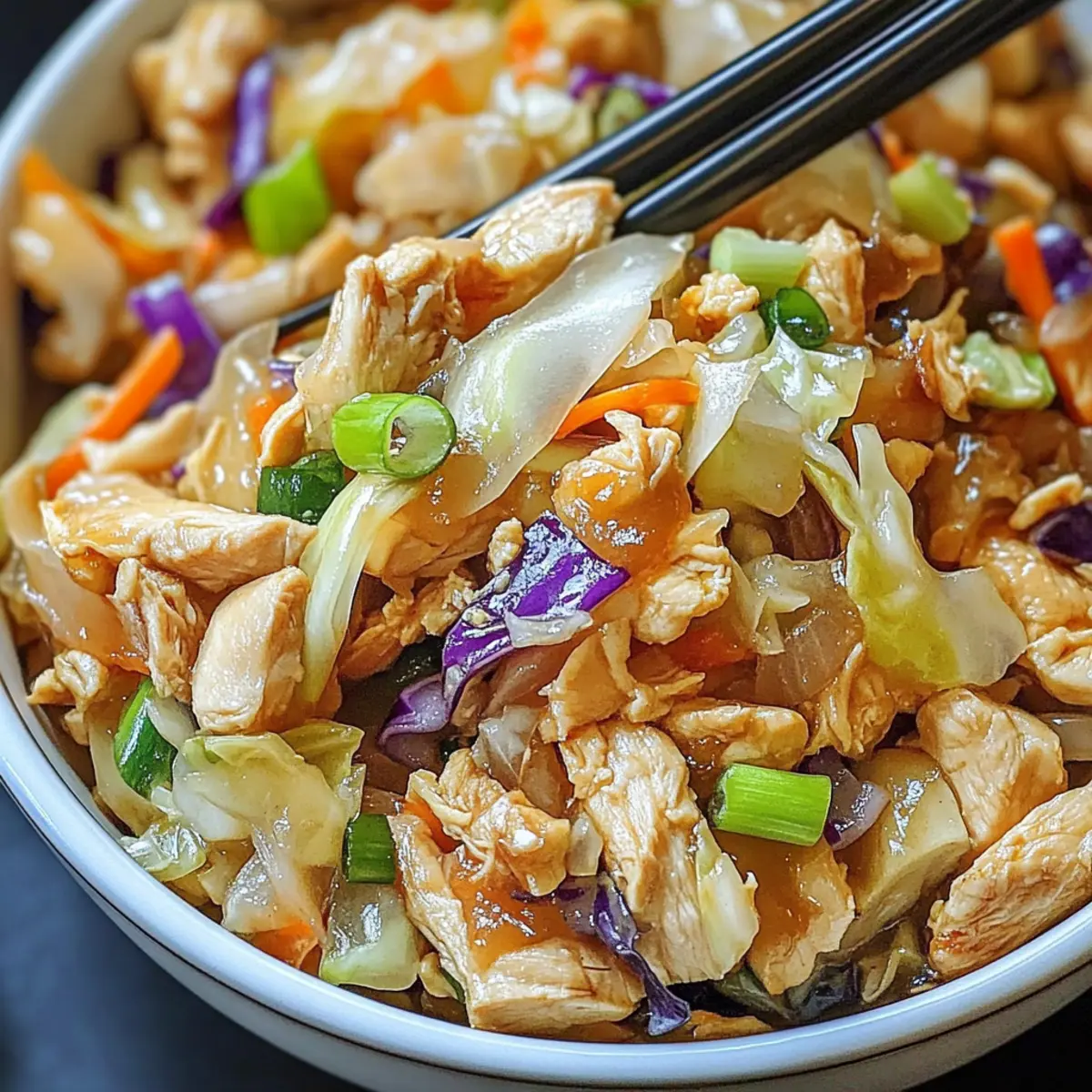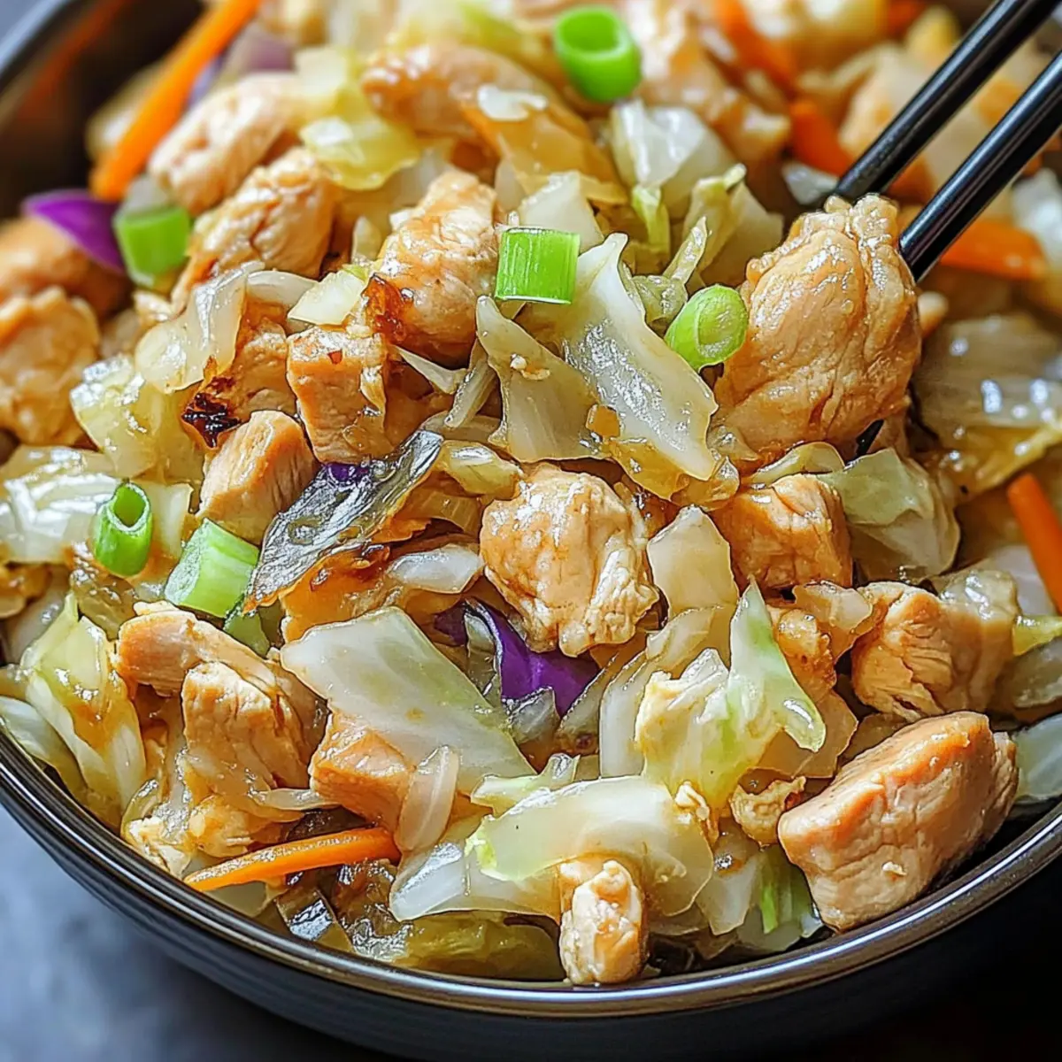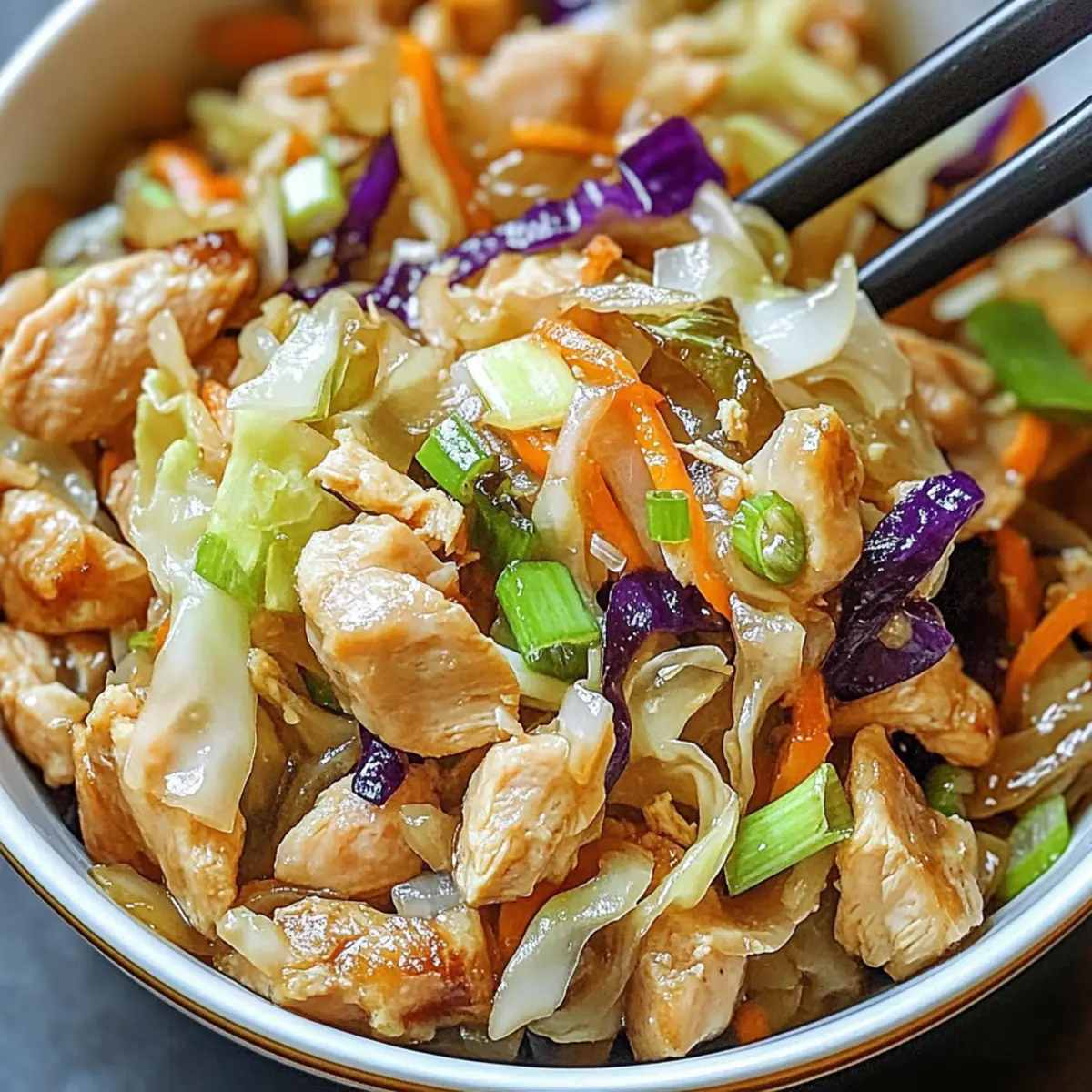 One-Bowl Wonder: Minimize cleanup with this all-in-one meal that marries flavors and textures beautifully—enjoy tender chicken with crisp cabbage in every bite.