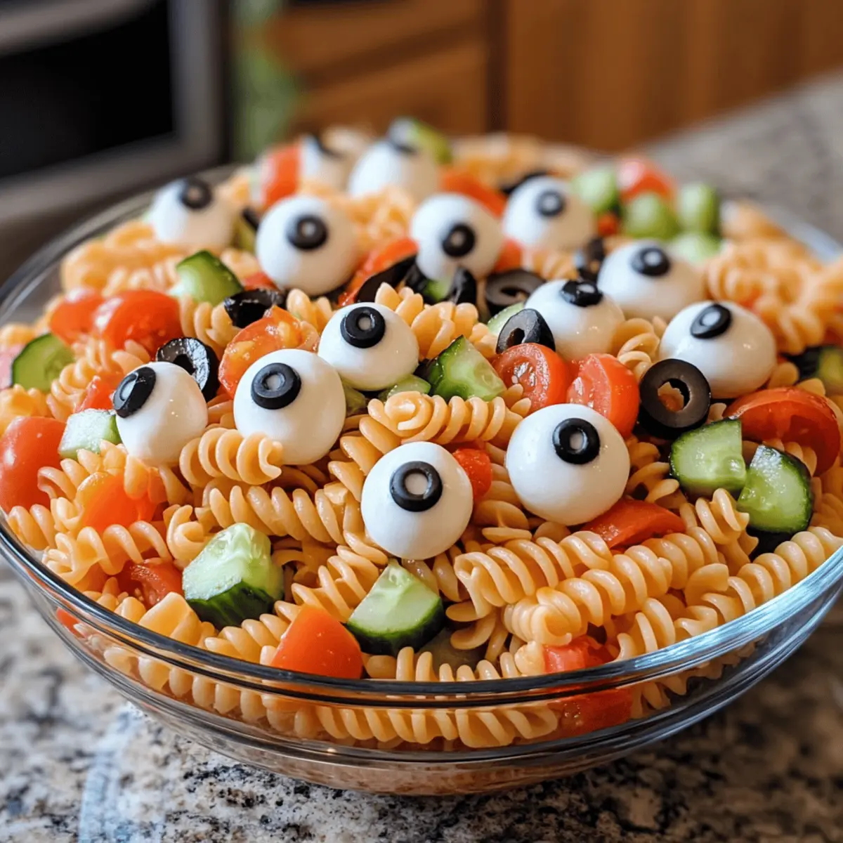 Spooky Fun: This Eyeball Pasta Salad is a showstopper that adds a festive flair to your Halloween gathering, making it an instant conversation starter.