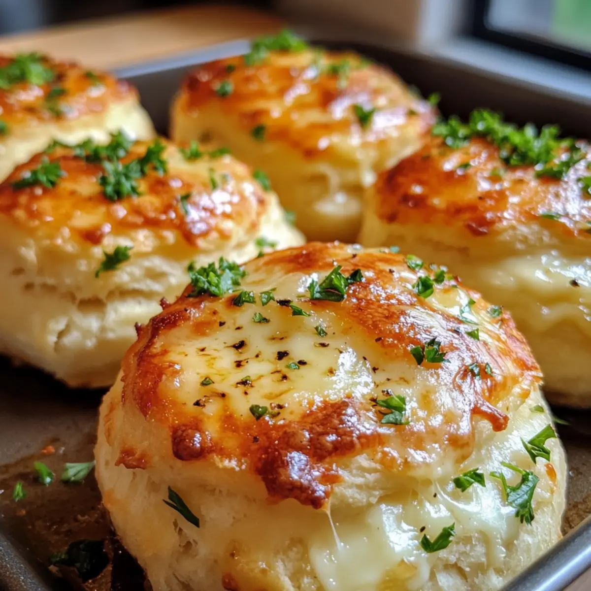 Once baked, remove the sheet from the oven and allow the bombs to cool for a few minutes on the baking sheet. Before serving, garnish them with chopped fresh parsley for a pop of color and freshness. Now, your Garlic Parmesan Cheeseburger Bombs are ready to delight everyone at your table with their irresistible flavor and warm, gooey interior!