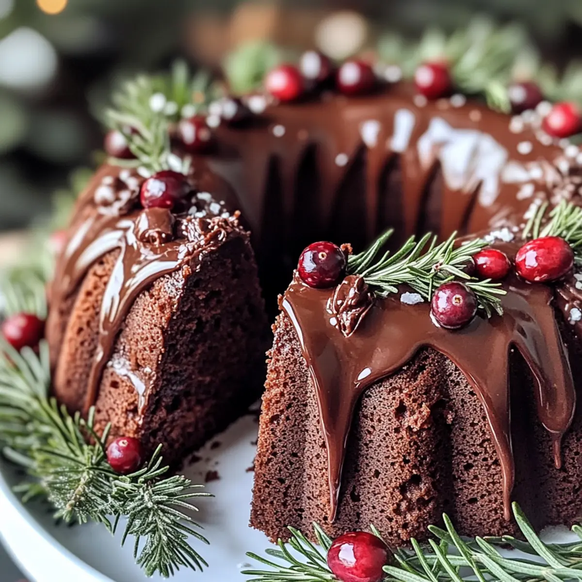 As I settled in for a cozy evening, the aroma of warm spices and rich chocolate wafted through my kitchen, instantly transporting me to a winter wonderland. This Gingerbread Chocolate Bundt Cake Christmas Wreath blends the nostalgic flavors of gingerbread with the indulgence of chocolate, creating a dessert that’s simply irresistible. Not only does it serve as a show-stopping centerpiece for any holiday gathering, but it’s also surprisingly easy to prepare—making it an ideal choice for both seasoned home chefs and those looking to impress with minimal fuss. Picture this: a slice of this moist cake, topped with a glossy chocolate glaze and adorned with fresh cranberries, alongside a steaming cup of coffee. Ready to bring a taste of festivity to your table? Let’s dive into this delightful recipe that will surely warm your heart this holiday season!