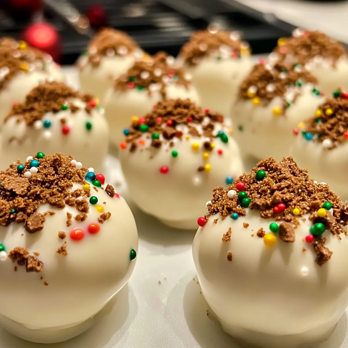 Decorative Flare: Top the truffles with crushed candy canes, holiday sprinkles, or edible glitter to give them a festive touch. Not only do they look gorgeous, but they also add a delightful extra crunch.