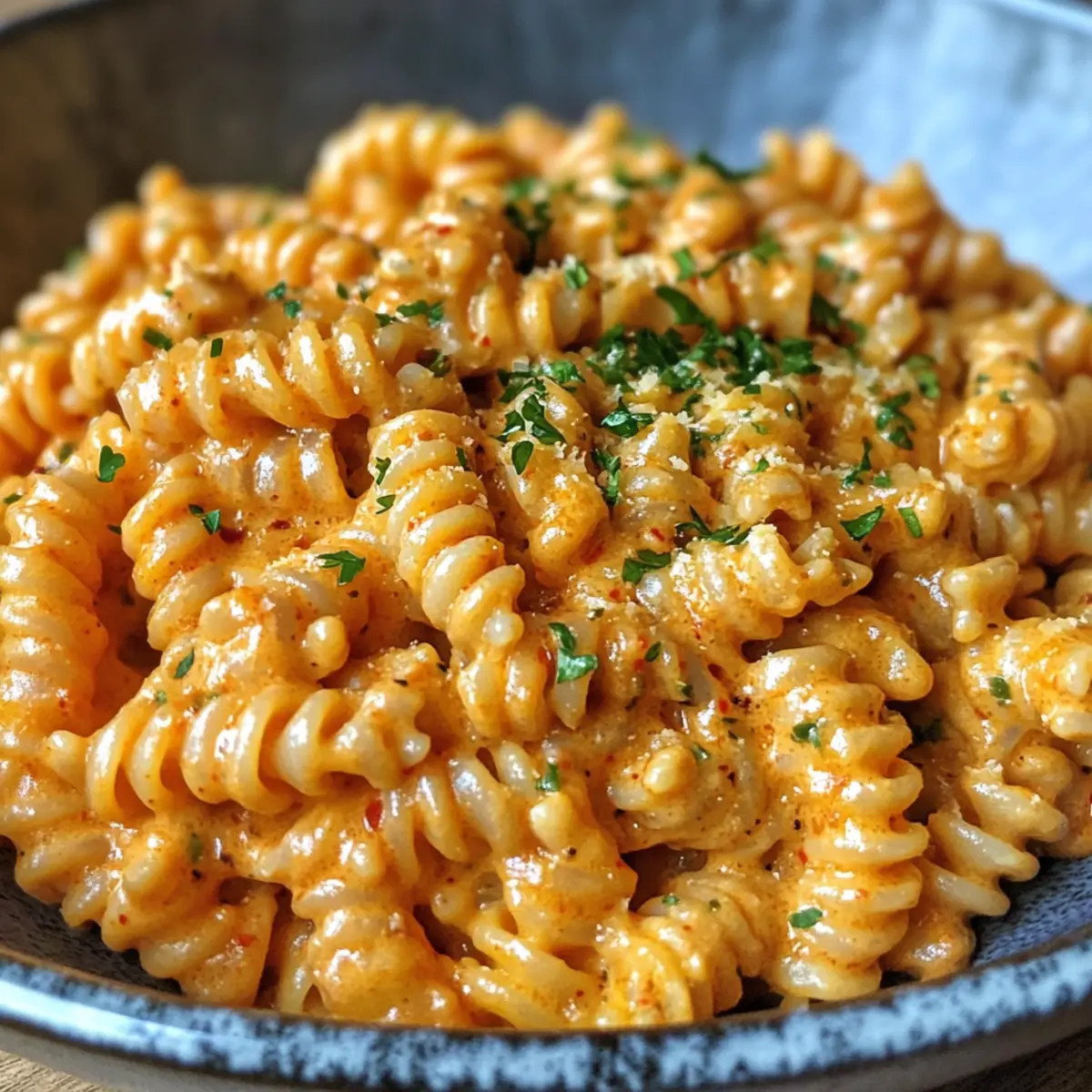 Plate your creamy Gochujang Pasta while it’s still warm, garnishing with a sprinkle of chopped parsley for a touch of freshness and color. The vibrant hues of the dish and the enticing aroma will surely impress your guests. Enjoy your flavorful creation immediately for the best texture!