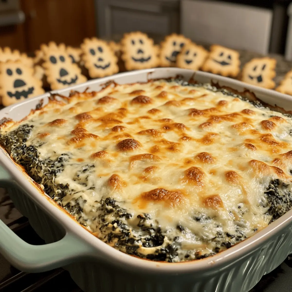 Remove the dip from the oven and allow it to cool for a few minutes before serving. Pair your Halloween Graveyard Spinach Dip with spooky-shaped crackers or breadsticks for a festive presentation. Encourage your guests to dive in and enjoy the creamy goodness while celebrating Halloween with a tasty twist!