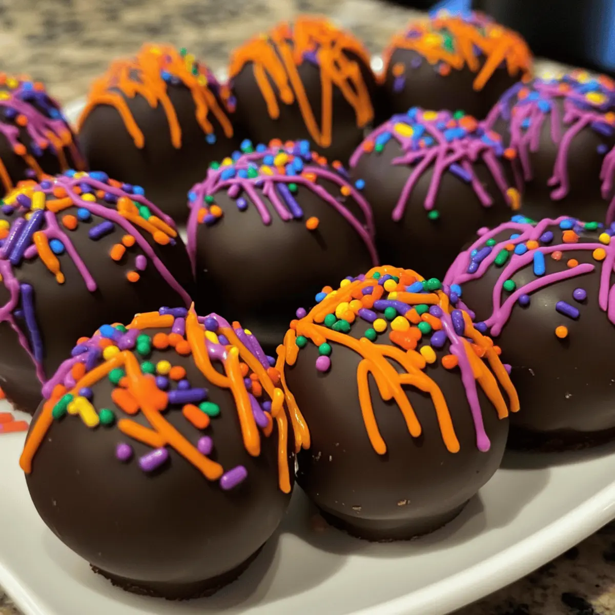 Before the chocolate sets, sprinkle your colorful decorations over the coated Oreo balls. This is where you can get creative! Use a variety of sprinkles to finish them off with a fun Halloween flair. Work quickly, as you want the sprinkles to stick to the wet chocolate coating for the best effect.