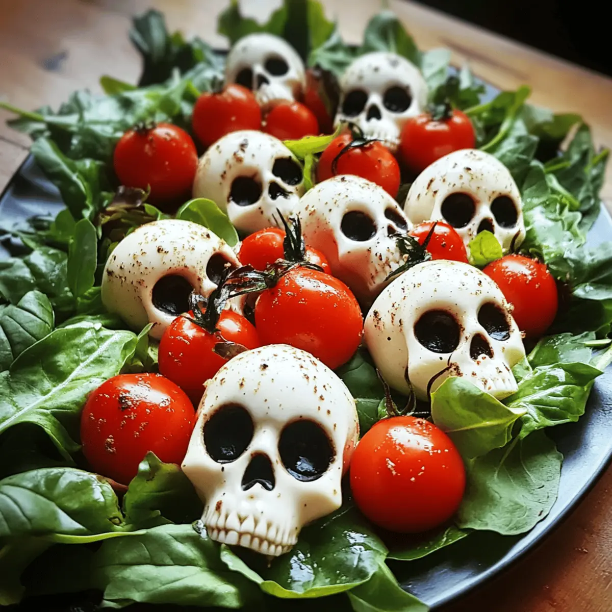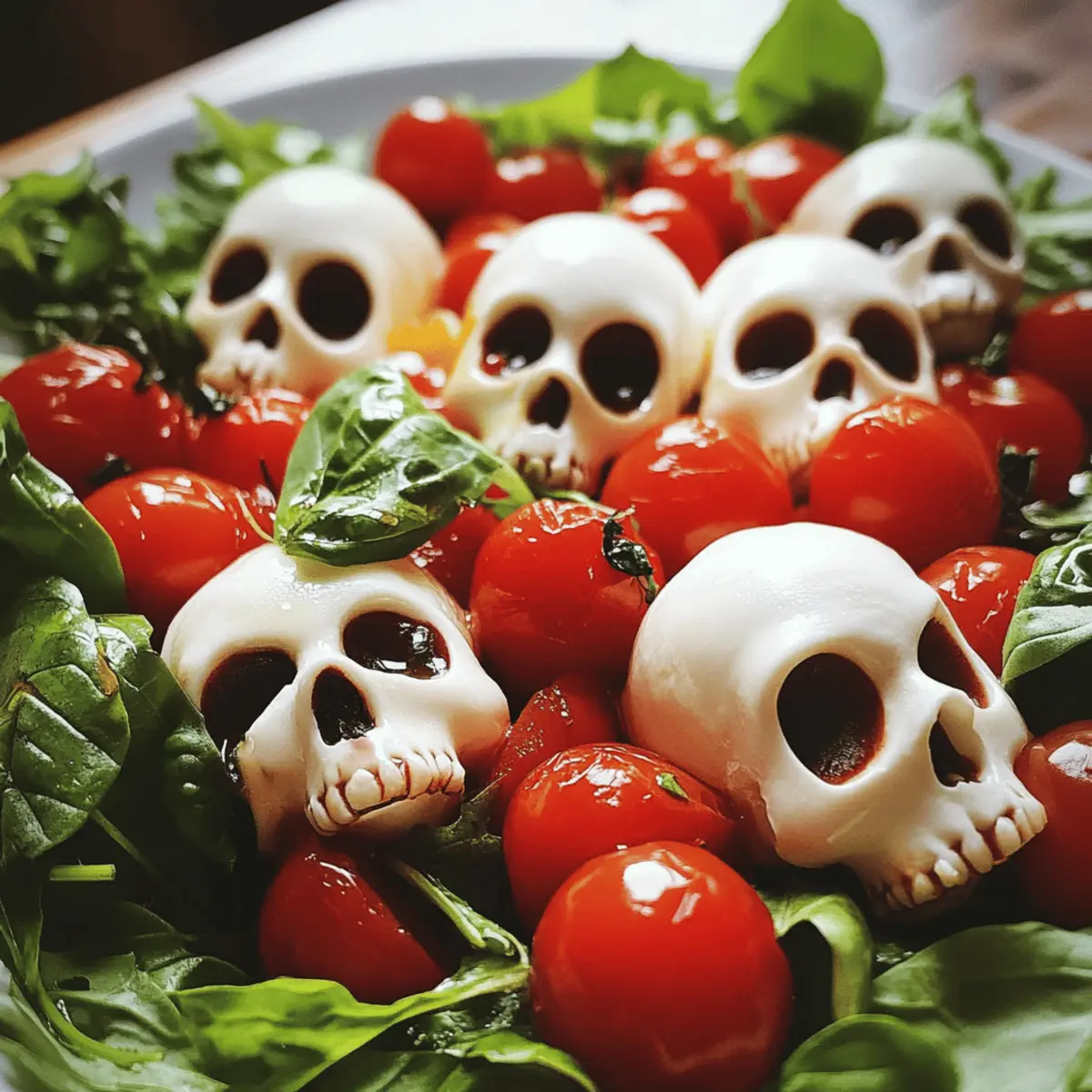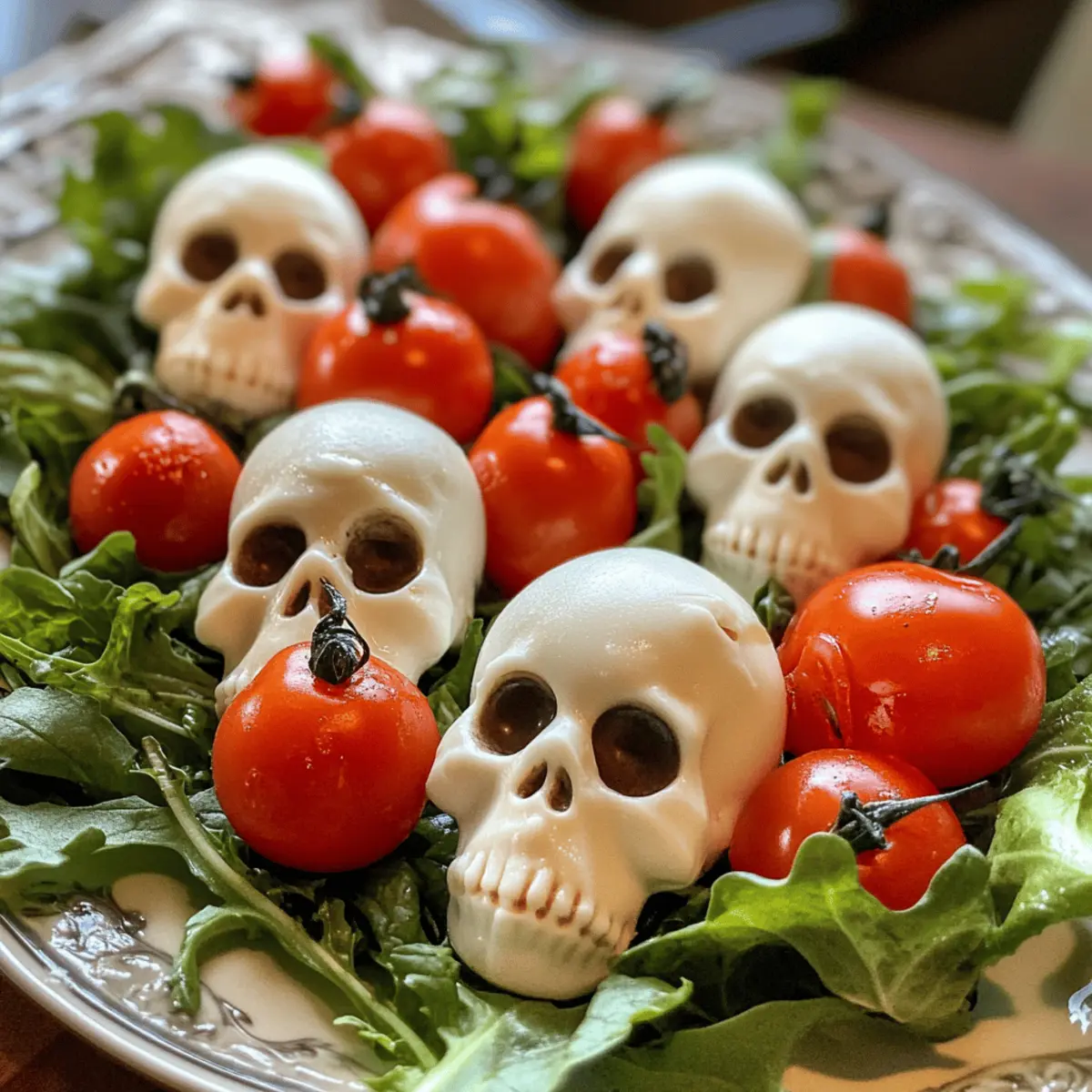 Make-Ahead: Prepare the mozzarella skulls in advance and refrigerate them. Assemble the salad just before serving to keep flavors vibrant and textures crisp.