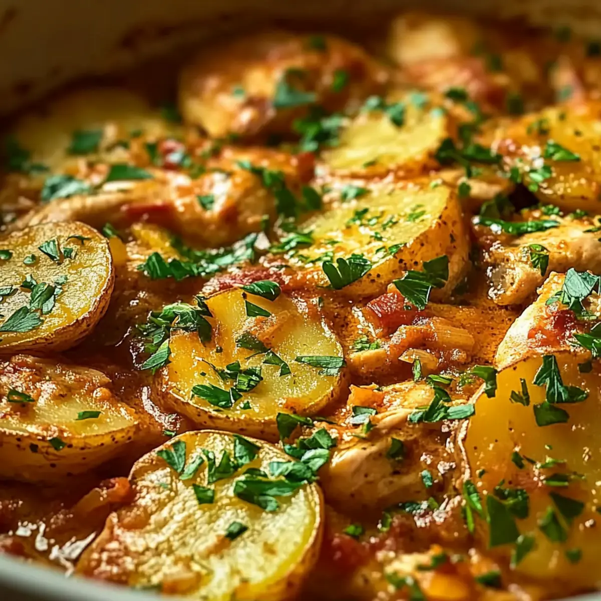 - Cover and cook on low for 6-7 hours or high for 3-4 hours, until the chicken is cooked through and potatoes are tender.