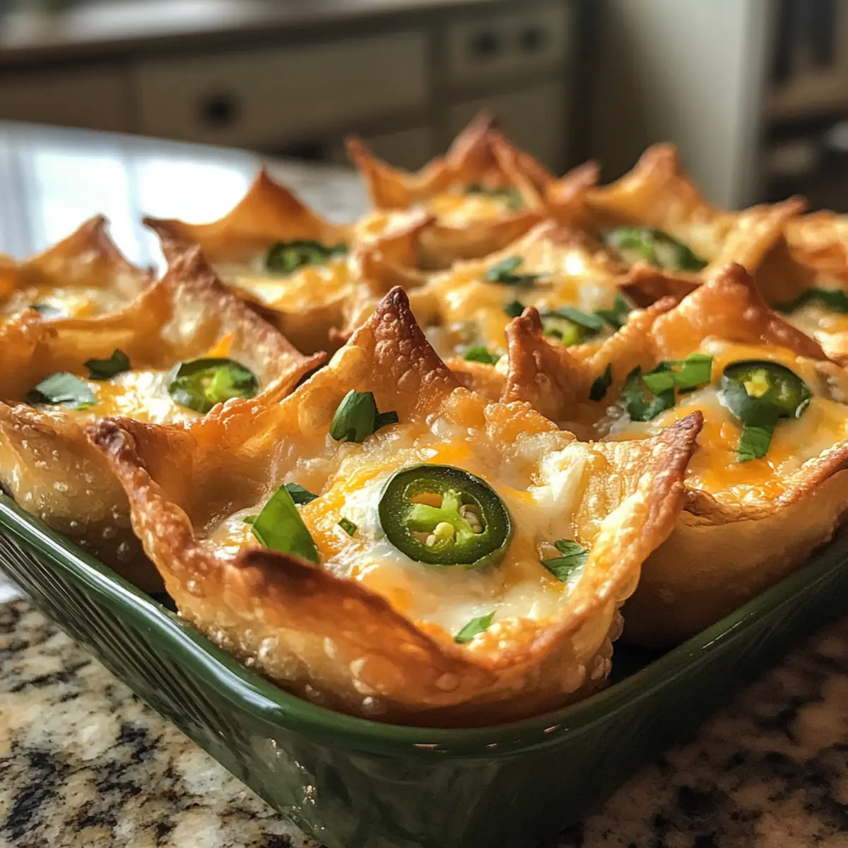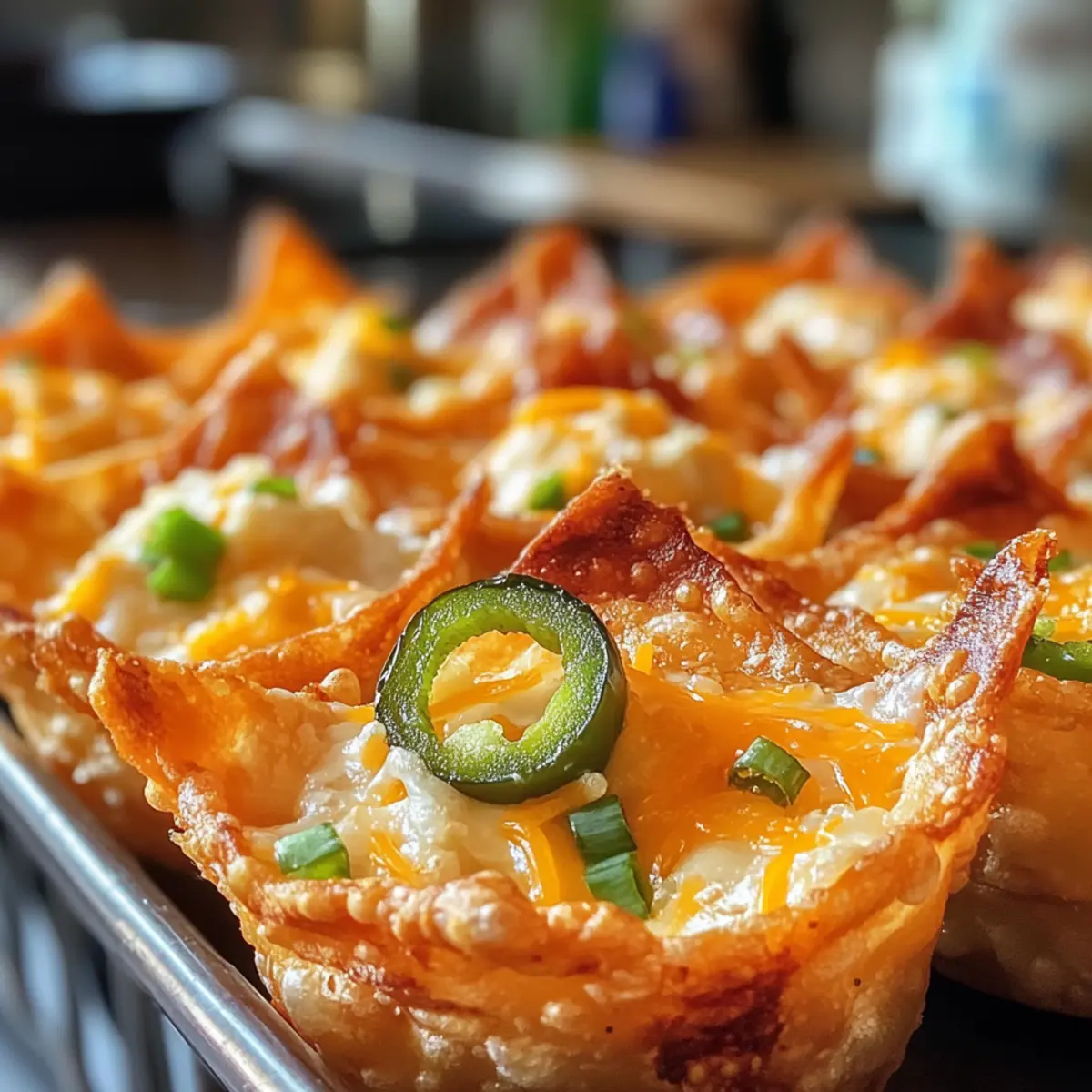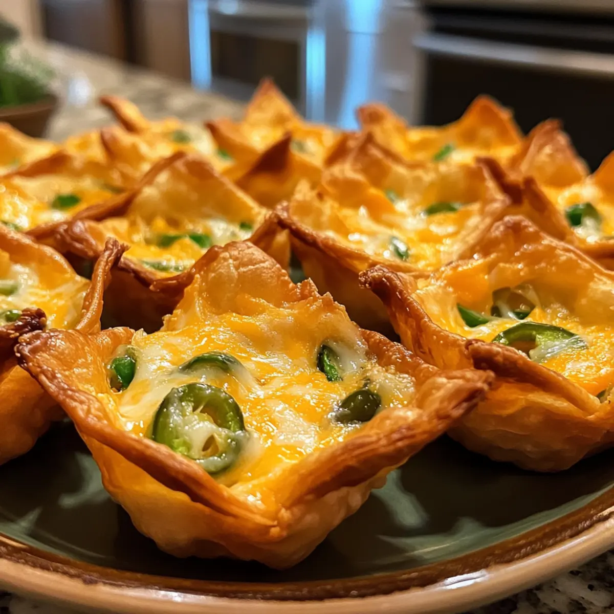 If you need to make adjustments, try using phyllo dough instead of wonton wrappers for a crunchier base. Reduced-fat cream cheese can lighten the filling, and for a milder taste, swap out jalapeños for sweet bell peppers. Feel free to experiment—adding bacon or different cheeses can completely alter the flavor profile!