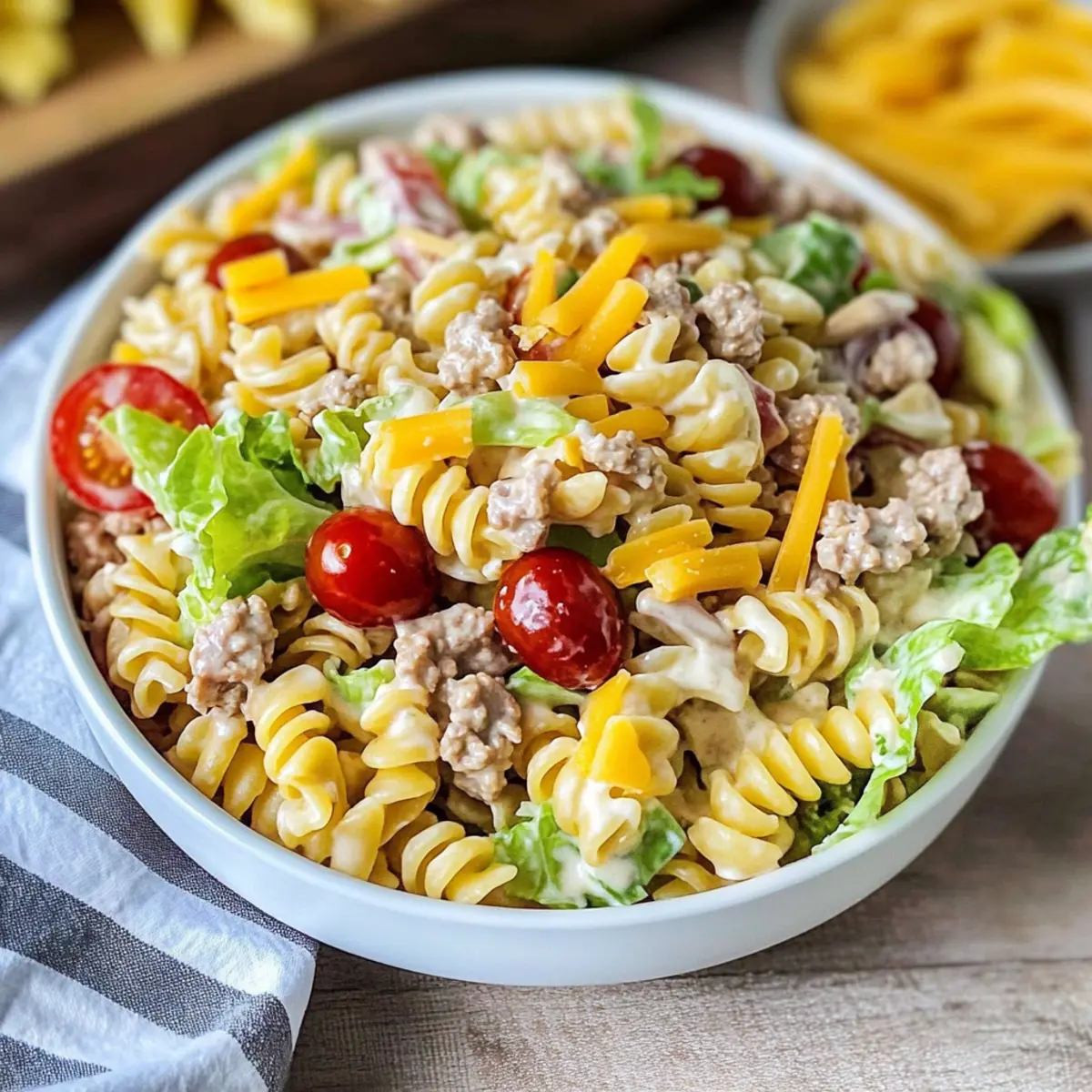 As I stood in the kitchen, the scent of sizzling meat mingling with the tangy aroma of pickles took me back to sun-soaked summer afternoons. This is no ordinary pasta dish; it’s the Jimmy Buffett Pasta Salad, a delightful fusion that captures the essence of a cheeseburger in a fresh, vibrant salad. Perfect for those leisurely gatherings or potlucks, this recipe is a breeze to prepare, taking just 30 minutes from start to finish. Not only is it a crowd-pleaser, but it’s also surprisingly versatile—delicious served hot or cold, making it a perfect option for any weather or occasion. Are you ready to dive into this tasty twist on a classic?