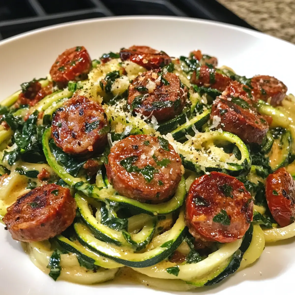 Keto Creamy Tuscan Zucchini Noodles with Sausage Love