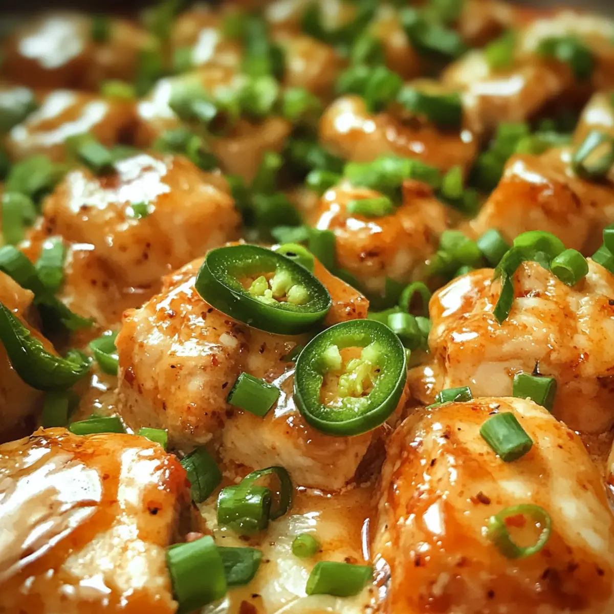 Remove the skillet from the heat and plate the Low Carb Bang Bang Chicken. Top with freshly chopped green onions and optional sliced jalapeños for an extra burst of flavor and color. Serve warm, and enjoy this delightful dish that is sure to be a hit at your table!