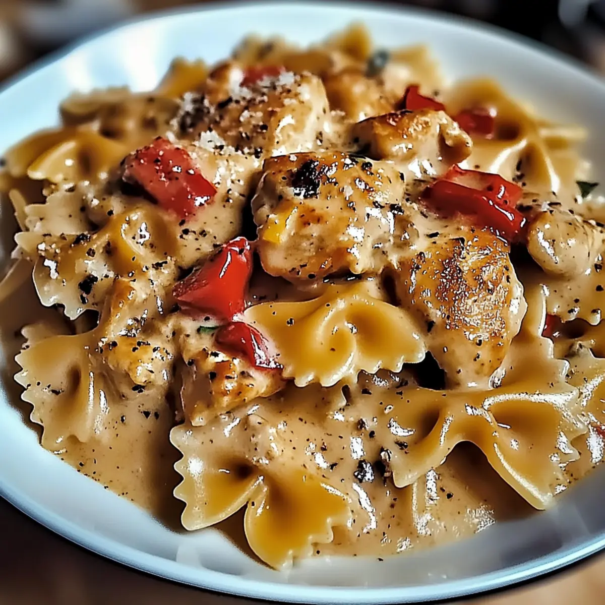 Plate your delectable Parmesan roasted red pepper chicken bowties hot, garnishing with freshly chopped parsley or basil for a burst of color and flavor. For an extra kick, consider sprinkling a few red pepper flakes on top or drizzling a bit of balsamic vinegar before serving. Enjoy this comforting dish with your loved ones!
