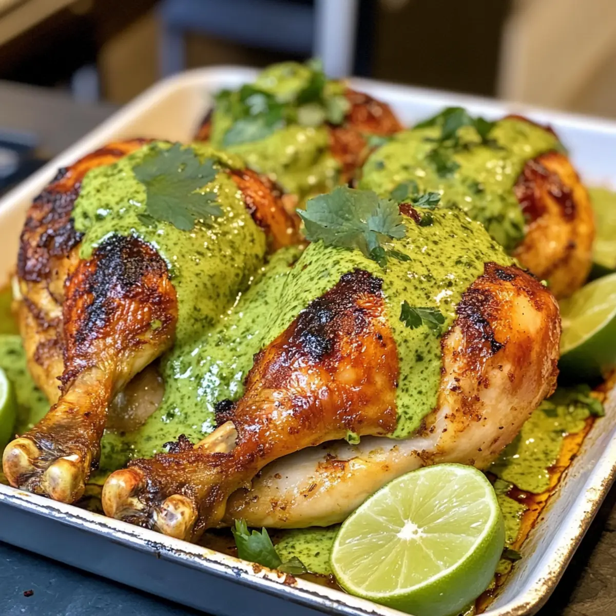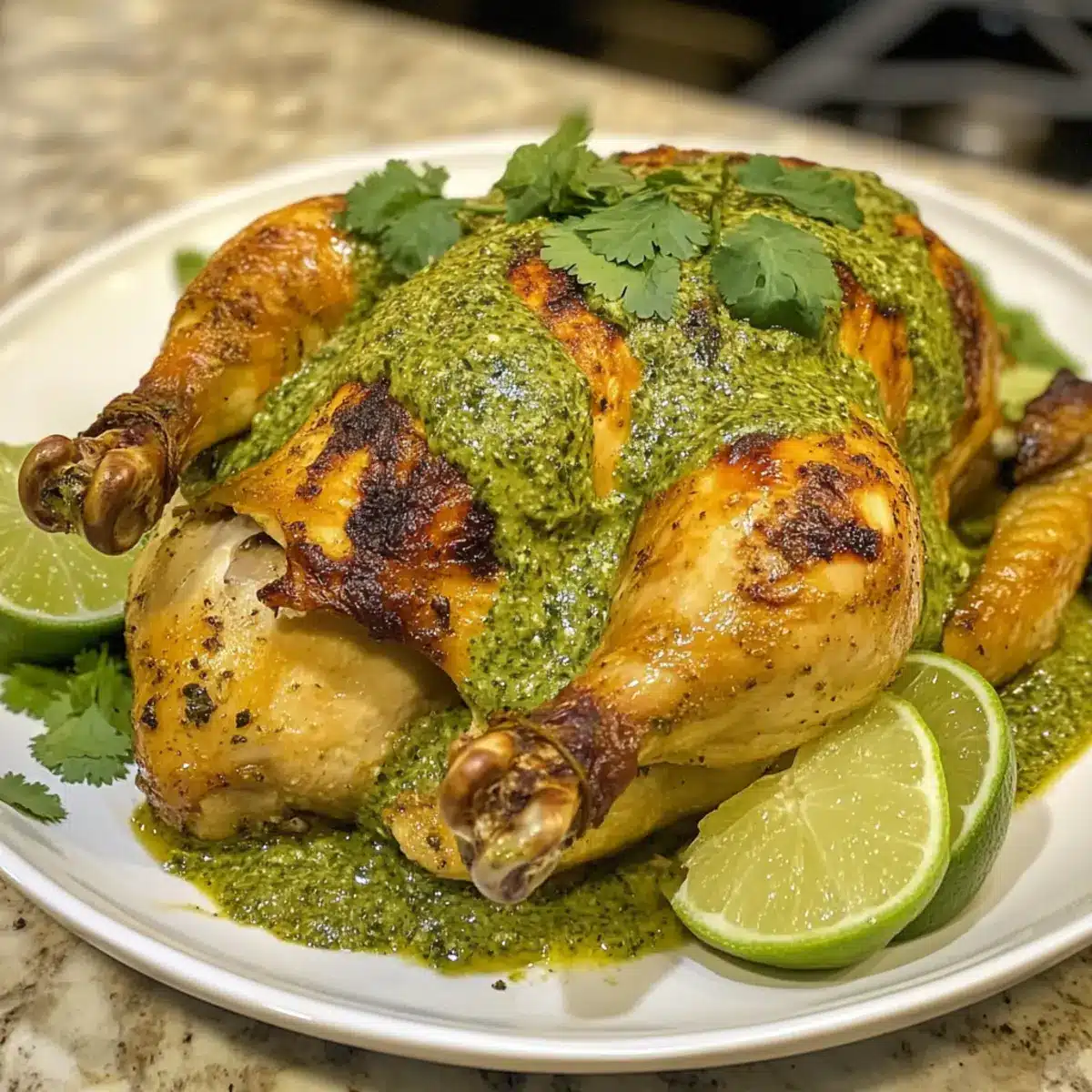 Creamy contrast: The tangy green sauce adds a refreshing brightness, perfectly complementing the roasted chicken.