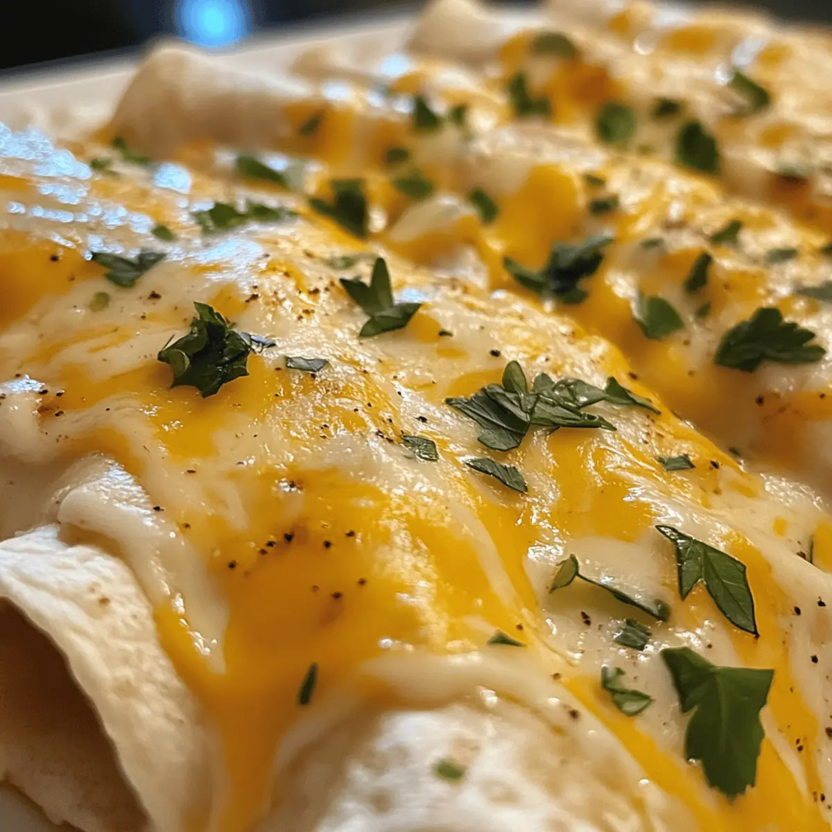 High-Protein Chicken Enchiladas with Dreamy White Sauce are perfect for busy weeknights, allowing you to embrace meal prep with ease! You can assemble the enchiladas entirely up to 24 hours in advance; simply cover the dish tightly with plastic wrap and refrigerate. The creamy white sauce can also be made ahead and stored separately in the fridge for up to 3 days; whisk before using to refresh its texture. When you’re ready to enjoy, just pull everything together, pour the sauce over the enchiladas, sprinkle with cheese, and bake at 375°F (190°C) for about 20 minutes. This ensures your meal maintains its delightful flavor and cozy warmth, making dinner time a breeze!