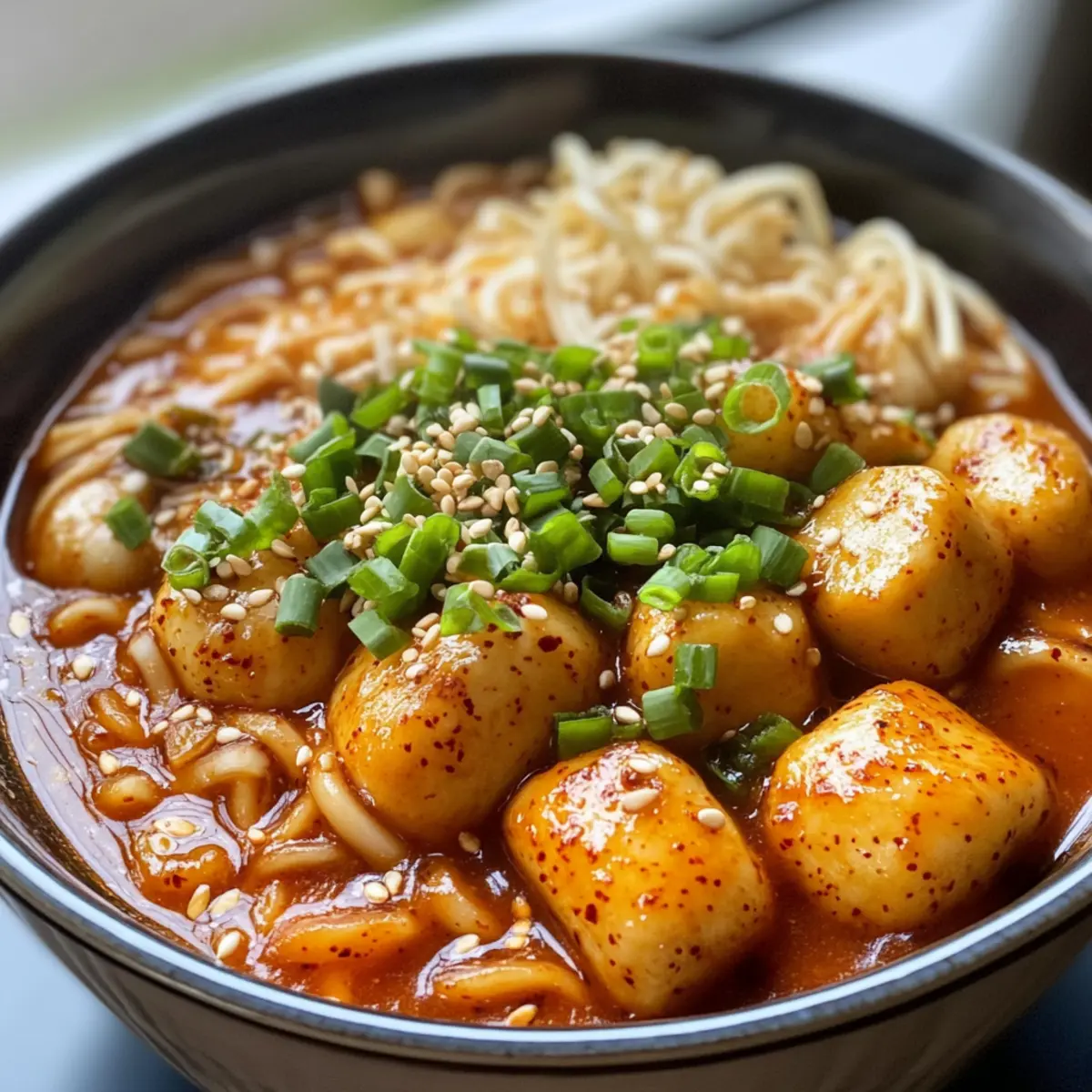 As I sat down to enjoy a steaming bowl of Rabokki, the delightful fusion of chewy tteokbokki rice cakes and tender ramen noodles reminded me of cozy nights filled with laughter and warmth. This Spicy Rabokki – Ramen with Tteokbokki isn’t just a quick meal; it’s a comforting hug in a bowl, drenched in a spicy gochugaru and gochujang sauce that dances on your taste buds. Perfect for lunch, dinner, or those late-night cravings, this dish is easy to whip up and sure to impress. Plus, it can be customized to fit your taste preferences, giving you a fun twist on traditional Korean cuisine. Are you ready to dive into a culinary adventure that brings the heart of Korea to your kitchen?