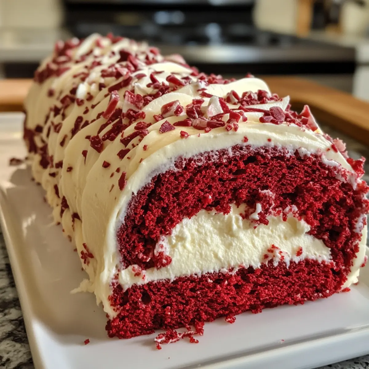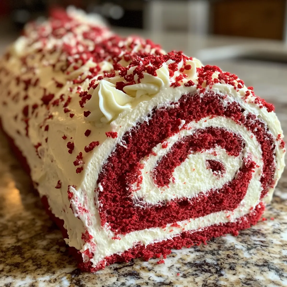 Decadent Red Velvet Yule Log with Creamy Filling Delight