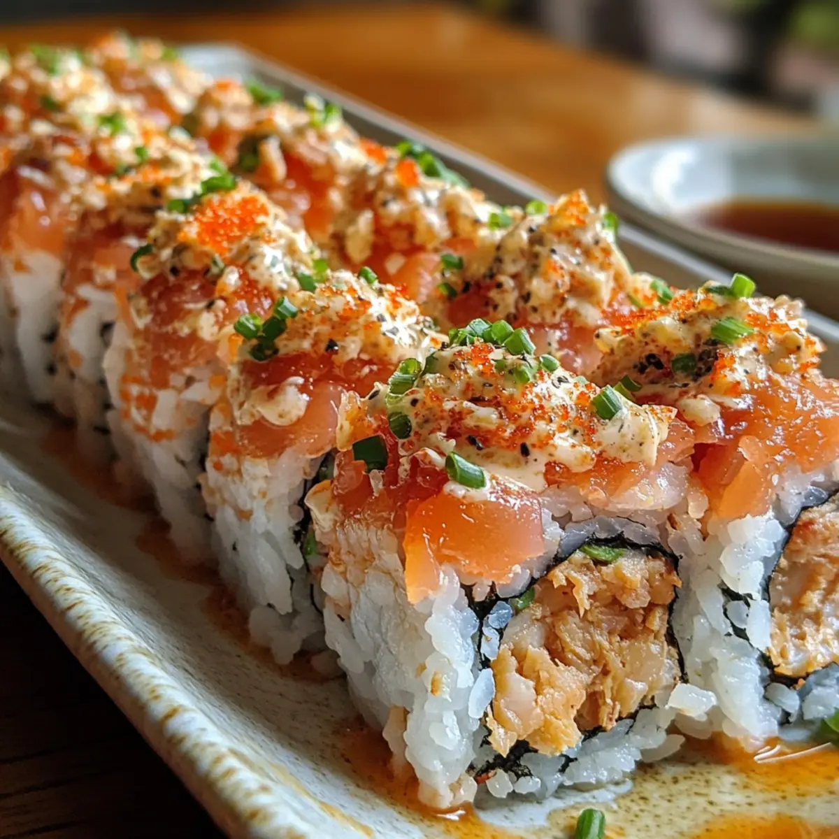- Seafood Swap: Replace the spicy tuna with salmon or a mix of your favorite seafood for a delightful twist. The rich flavors of salmon pair beautifully with the creamy topping.