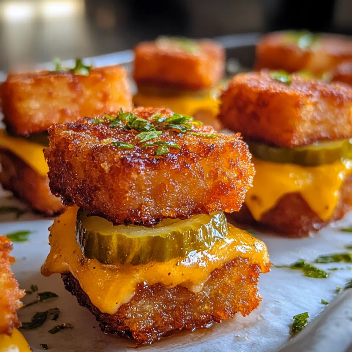 - Zesty Pickle Chips: Accent the bites with tangy pickle chips that echo the dill pickles within, adding an extra layer of flavor that burger lovers will appreciate.
