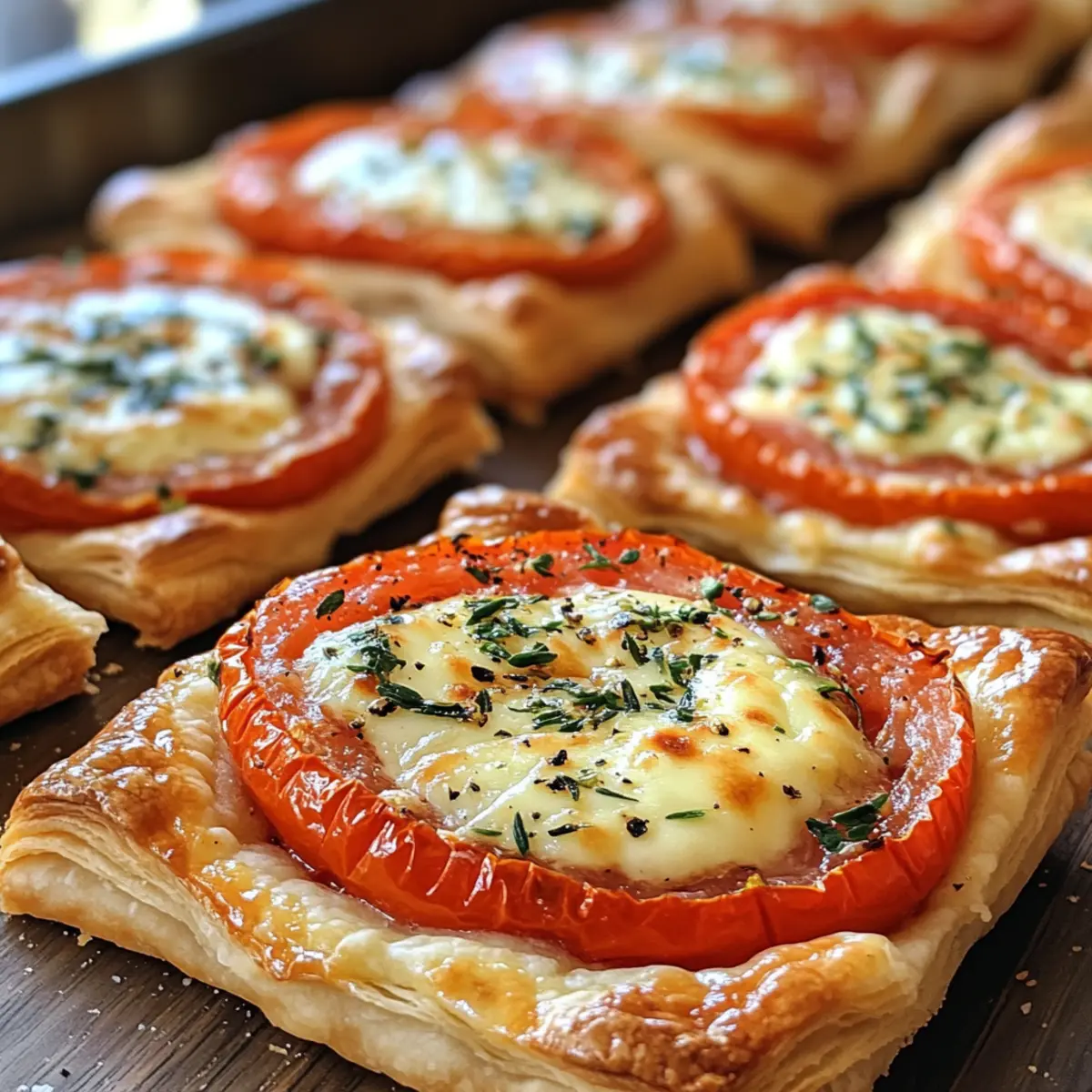 Pesto Layer: Spread a thin layer of pesto on the puff pastry before adding cheese for an herbaceous twist. It brings an Italian flair that pairs beautifully with the tomatoes.