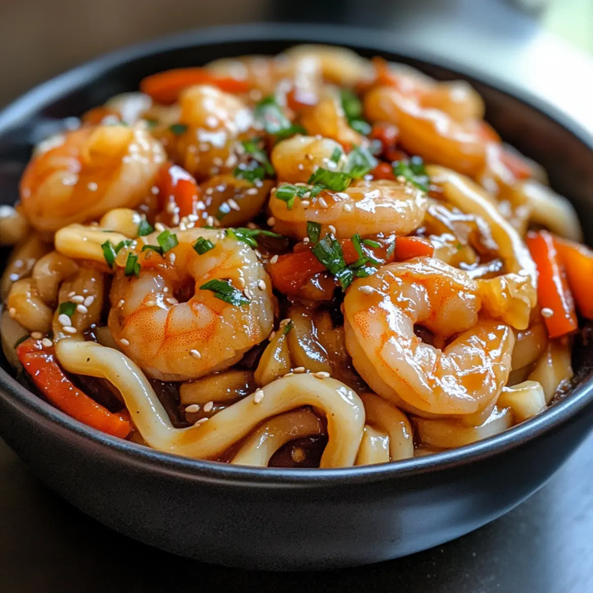 Quick and Easy: This Yaki Udon with Shrimp can be on your table in just 20 minutes, perfect for busy weeknights when you crave comfort food without the wait.